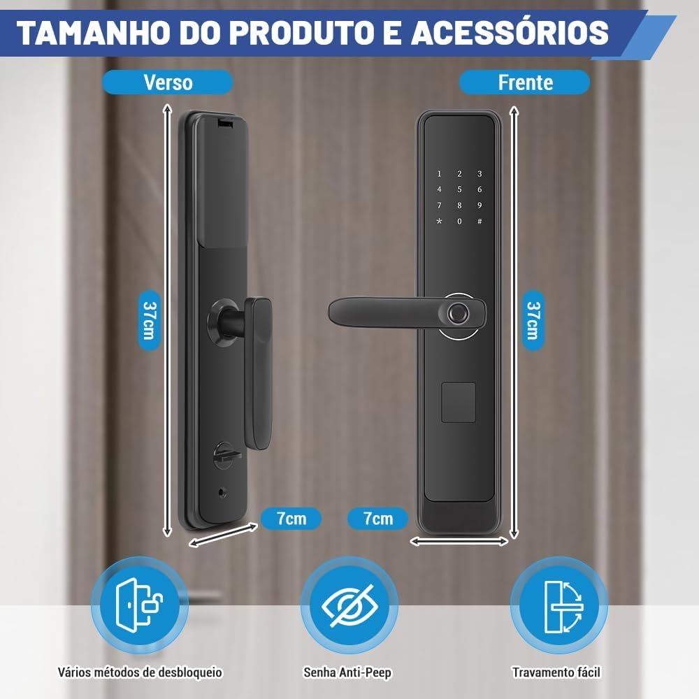 🏅〖 ABERTURA COM IMPRESSÃO DIGITAL 〗Esta fechadura eletrônica é equipada com tecnologia avançada de reconhecimento biométrico, que identifica impressões digitais em 0,3 segundos com alta precisão e suporta o registro de várias impressões digitais. As impressões digitais de idosos e crianças também podem ser identificadas rapidamente, eliminando o incômodo de esquecer as chaves e permitindo a abertura com um simples toque.