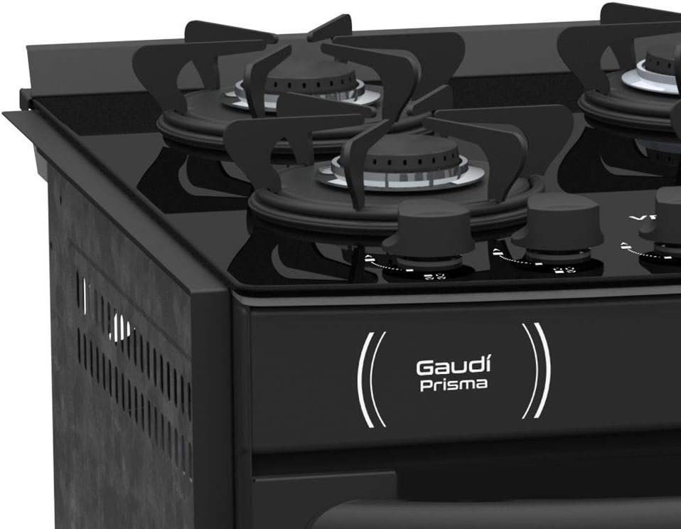 FOGAO A GAS DE EMBUTIR GAUDI PRISMA VITREO 4Q PRETO GAS GLP