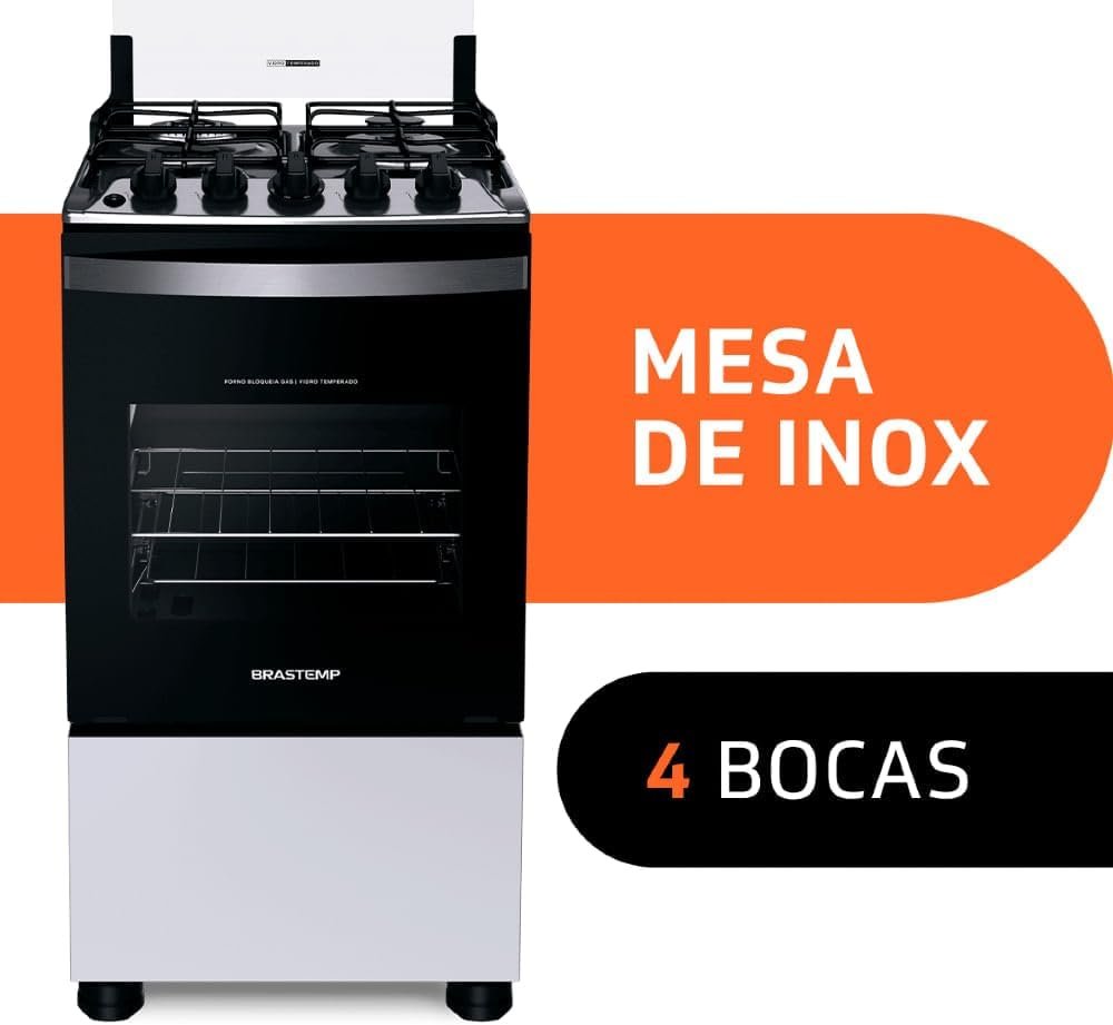 Fogão Brastemp 4 Bocas Branco com dupla chama e grades individuais – BFO4EBB Bivolt