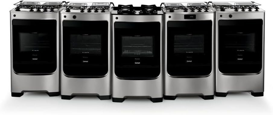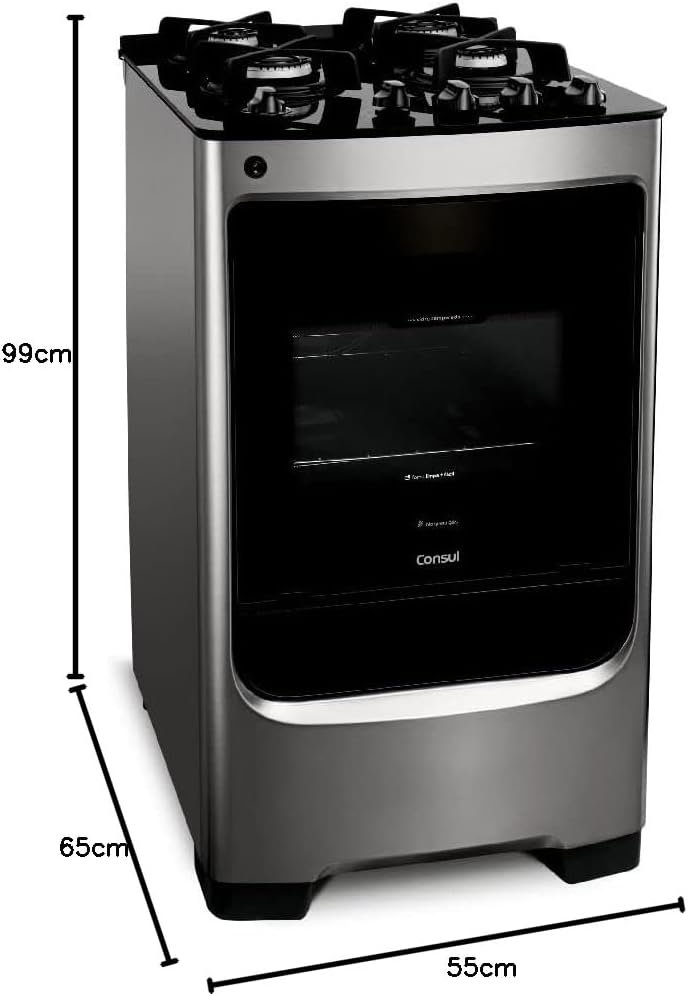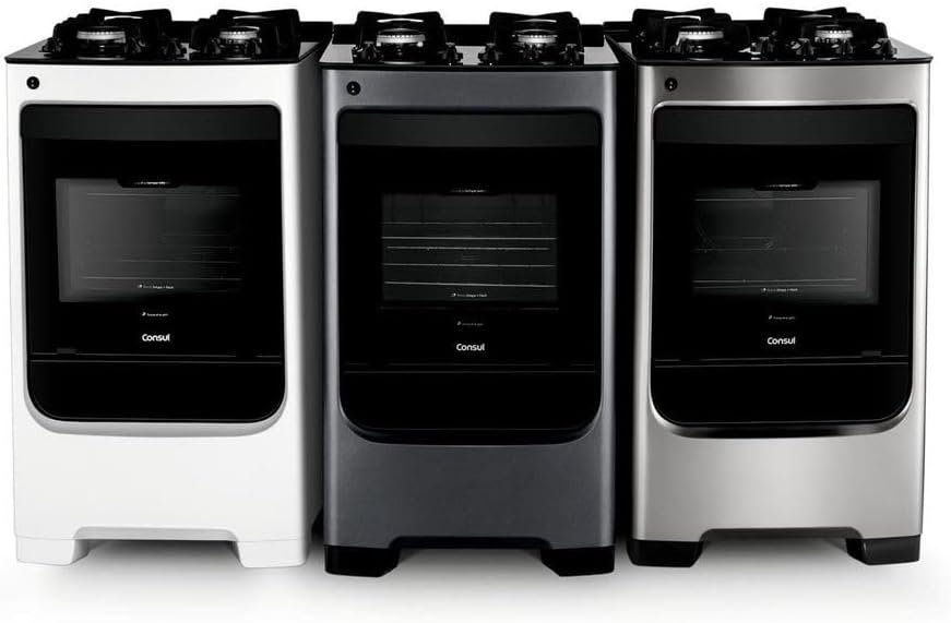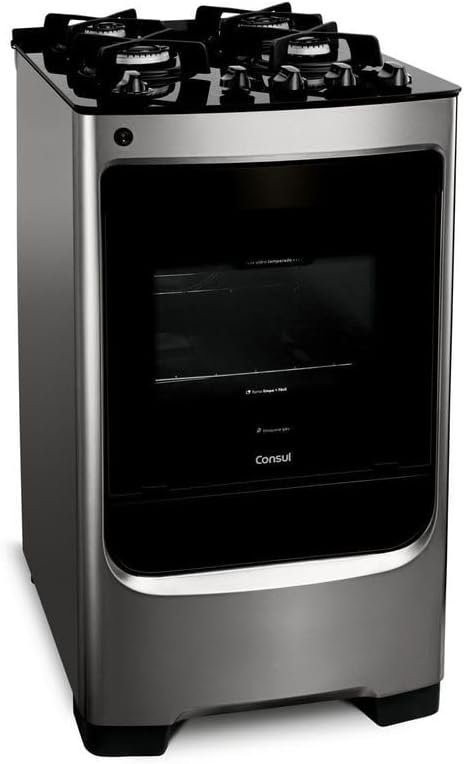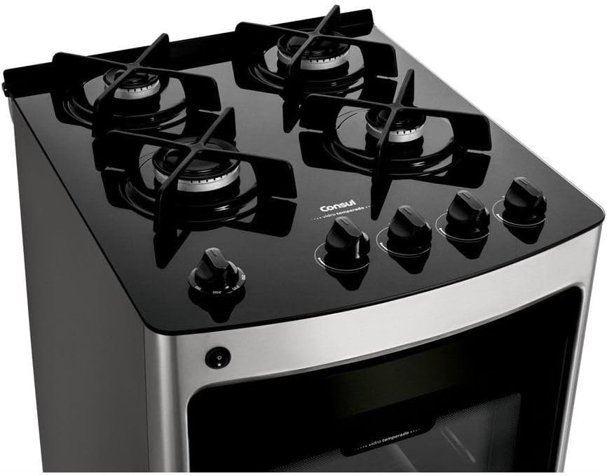 Fogão Consul 4 bocas cor Inox com mesa de vidro e grade de ferro fundido – CFO4VAR BIVOLT