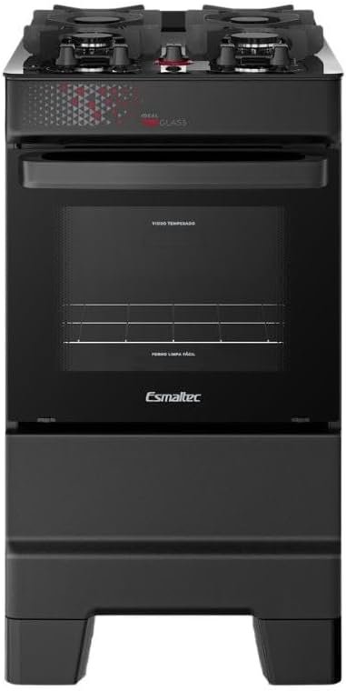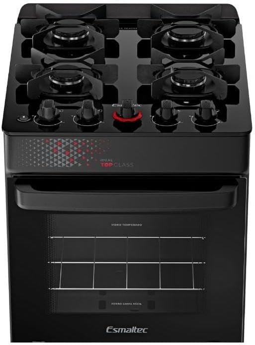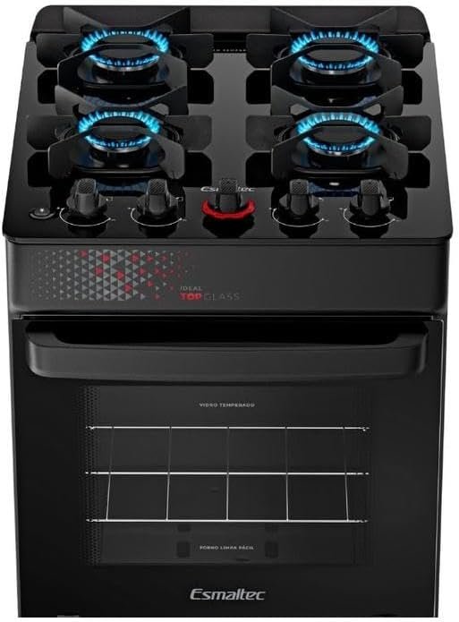 Fogão Esmaltec Ideal Top Glass 4 Bocas Automático Mesa de Vidro Preto Bivolt