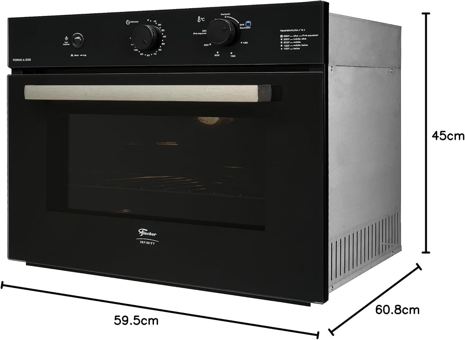 FORNO A GÁS EMBUTIR INFINITY 50L COM GRILL PRETO 220V – 31000-79709