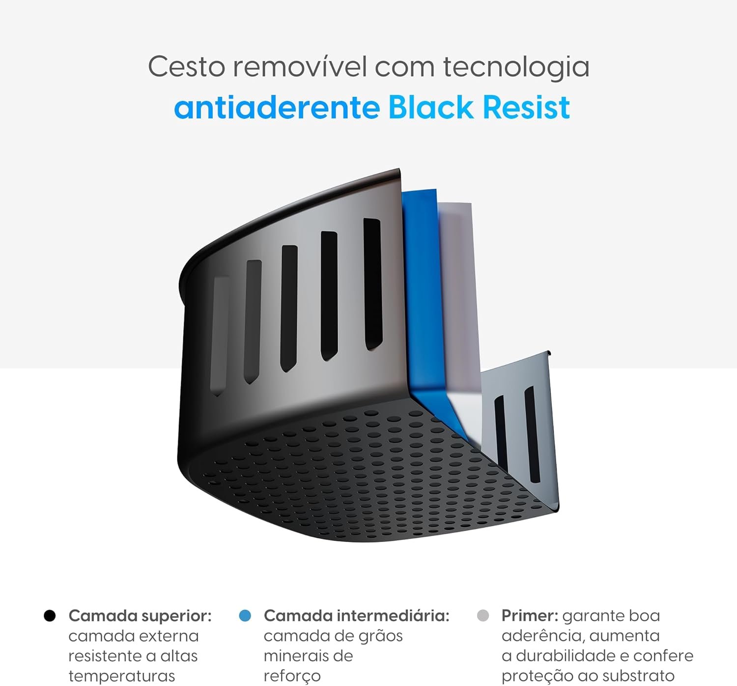 Tecnologia Black Resist oferece proteção antiaderente superior e facilita a limpeza e manutenção diária.