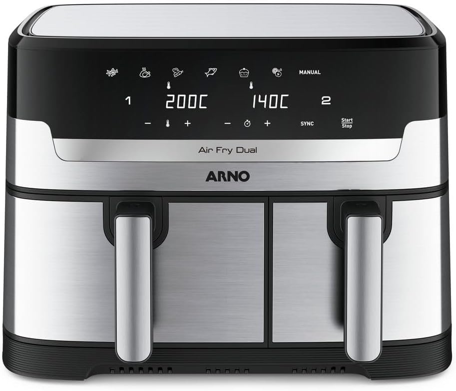 Fritadeira Sem Óleo Air Fryer Arno Dual 8,3L AFD2, 1800W, Inox e Preta, Cestos Duplos Independentes, Função SYNC, Painel Digital, 220V