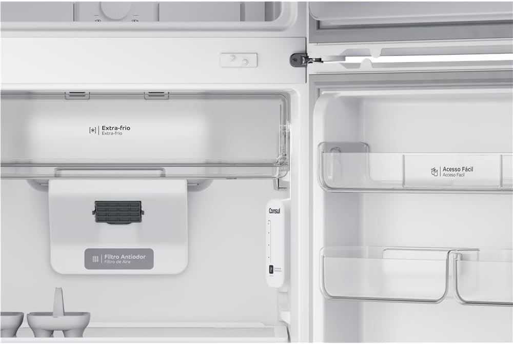 A Geladeira Consul Frost Free Duplex 410 litros com Freezer Espaçoso tem flexibilidade e capacidade de sobra para organizar tudo do seu jeito, chega de malabarismo para guardar os alimentos. Com os Compartimentos Removíveis você acomoda tudo que deseja na porta da geladeira, e com a Função Turbo, você consegue acelerar o resfriamento da geladeira, mesmo quando está cheia. A Geladeira também conta com o Filtro Antiodor que tira o mau cheiro e o gosto de geladeira da água. Bem prática, bem espaçosa, bem pensada pra você.
