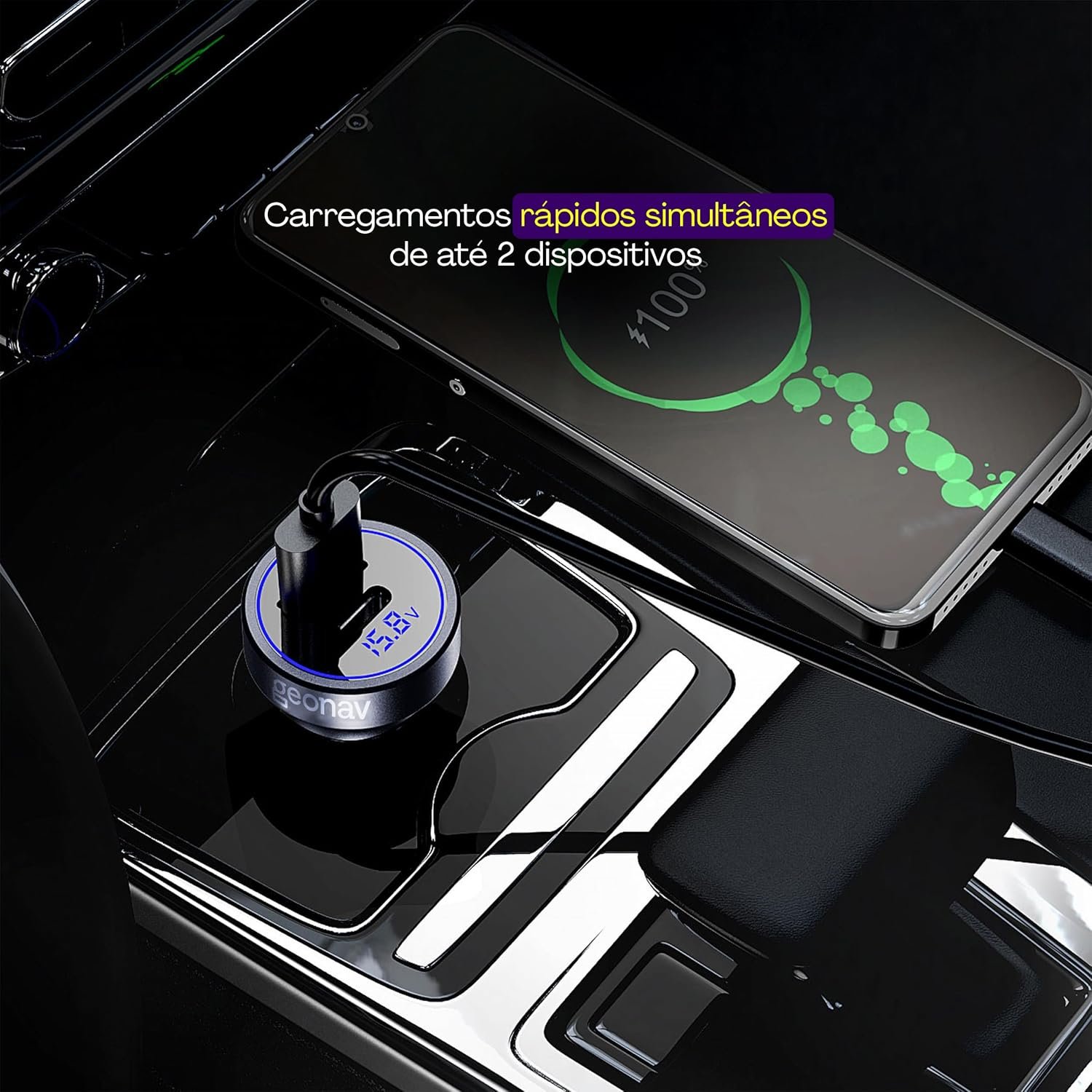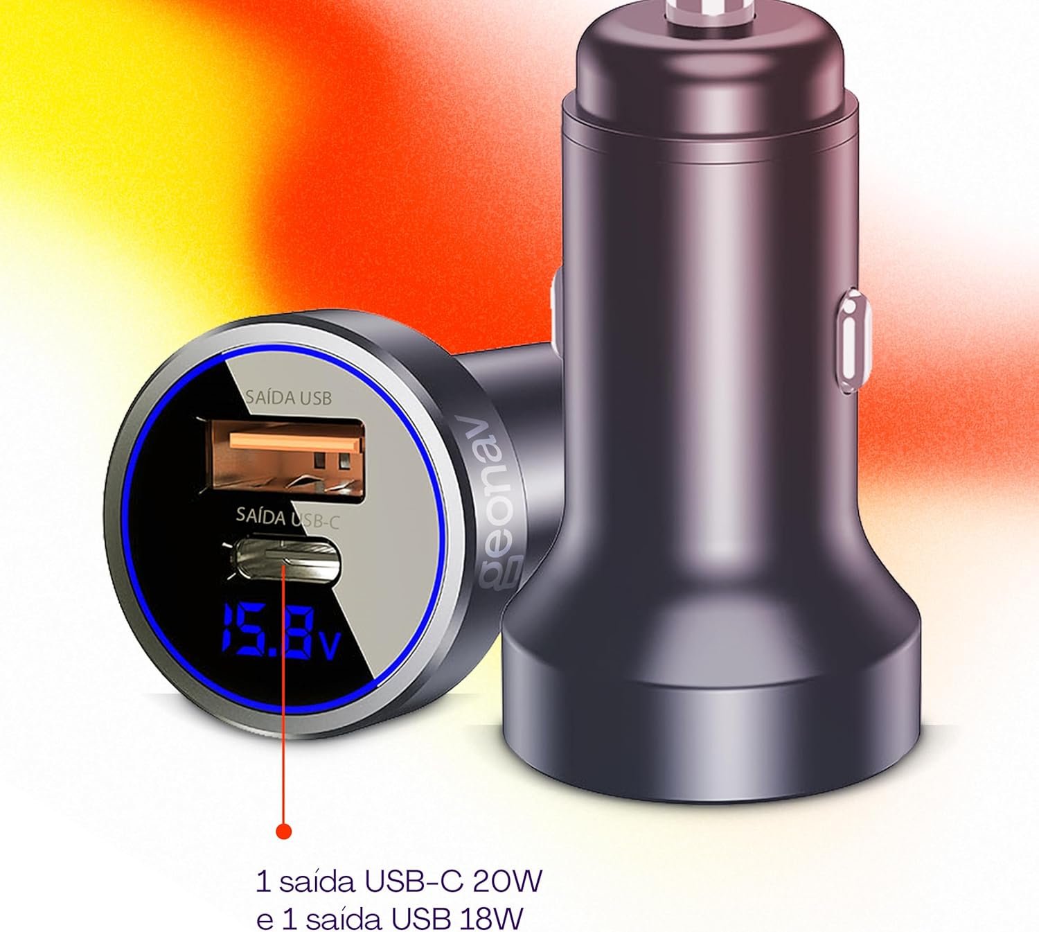 Carregador Veicular ultrarrápido SuperPower Duo 38W, CH38PDQC, Geonav