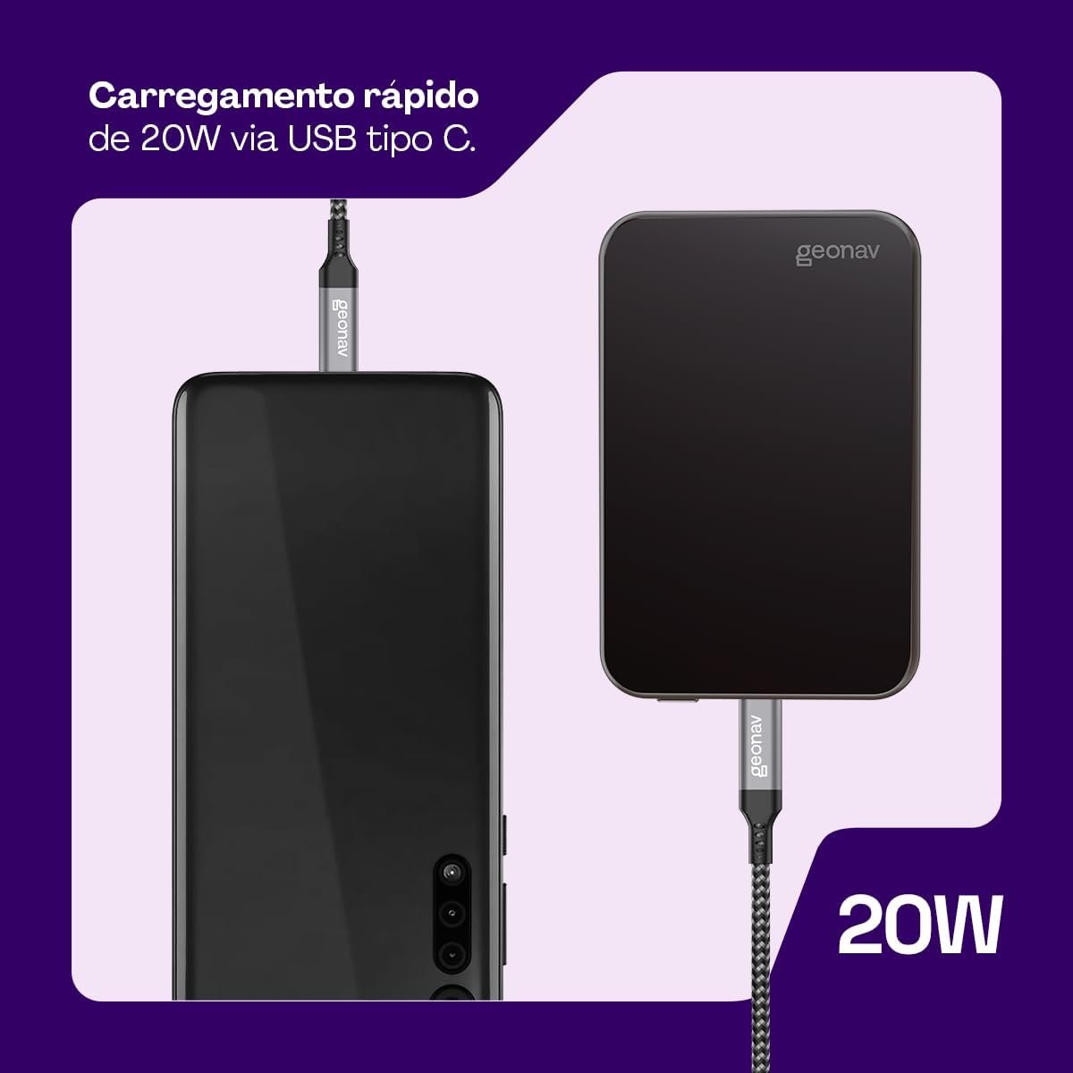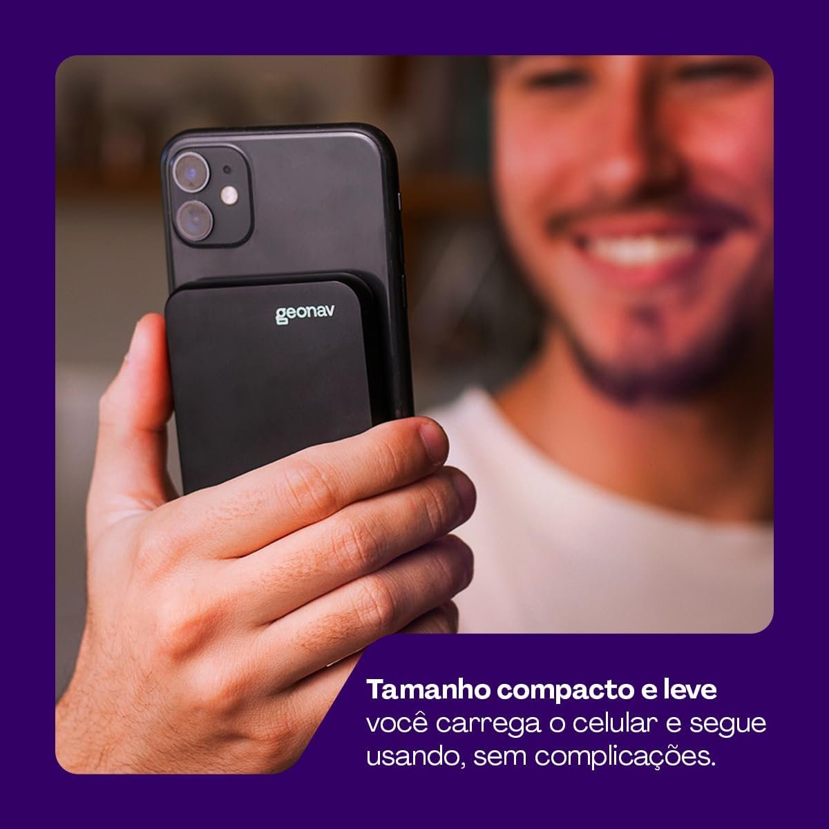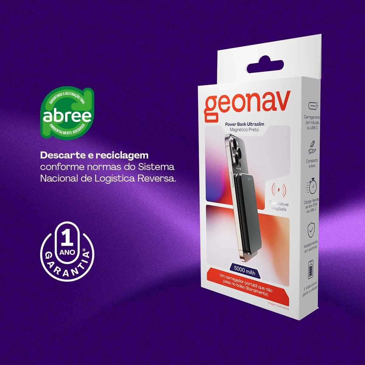 Geonav Power Bank, Carregador Portátil Universal por Indução 5.000mAh, Ultraslim Carregamento rápido, Compatível com MagSafe®, PB5KALMAGBK, Preto