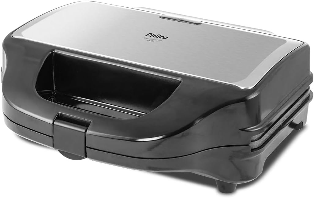 O Grill e Sanduicheira Philco PGR17PI Chapas Removíveis 900W era o item que faltava na sua cozinha para mais praticidade, versatilidade e eficiência no dia a dia. Ele pode ser usado como grill ou sanduicheira. Com 900W de potência pode ser guardada na posição vertical, proporcionando maior comodidade para armazenar! Faz dois sanduíches ao mesmo tempo, acabando com sua fome de uma vez só. Possui 2 placas removíveis: uma ondulada para grill e outra para selar sanduíche! As placas são com revestimento antiaderente, assim os alimentos não grudam, facilitando a limpeza. Grelha carnes, peixes, e vegetais, além de preparar pães quentinhos e crocantes, alimentação saudável e cardápio variado. É equipado com luzes indicadoras de funcionamento e aquecimento. Tem alça para transporte, base antiderrapante e trava para segurança. Está disponível em 127V e 220V. Garanta já o seu Grill e Sanduicheira Philco PGR17PI Chapas Removíveis 900W