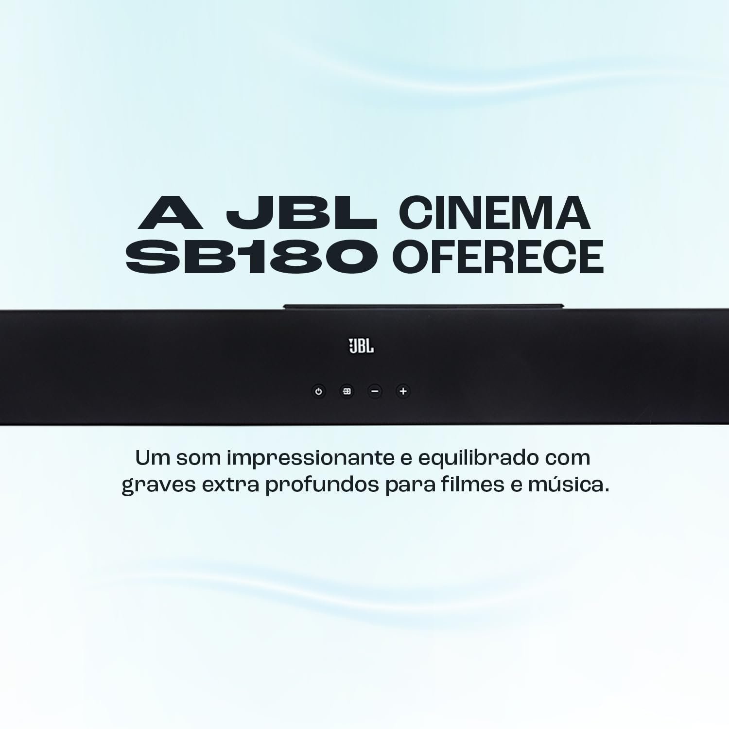 A JBL Cinema SB180 oferece 110W RMS de potência de sistema, óptica e ARC HDMI, dois driver racetrack potentes de alcance total e um subwoofer sem fios. Desfrute de um som impressionante e equilibrado com graves extra profundos para filmes e música. Além disso, está equipada com Bluetooth para poder reproduzir a sua música preferida sem fios a partir de qualquer smartphone, tablet ou computador portátil e inclui uma saída ARC HDMI por cabo que garante uma experiência de utilizador sem complicações.
