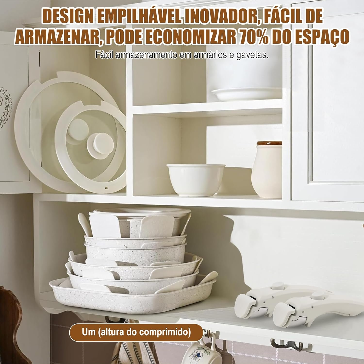 ✔️【Design Empilhável Perfeito】O Jogo de Panelas ANTUVI Adotando um design empilhável perfeito, economizando até 70% mais espaço. Perfeito para uso no forno, na geladeira ou para economizar espaço na cozinha.Organização e Limpeza Sem Esforço. Para facilitar o seu dia a dia!
