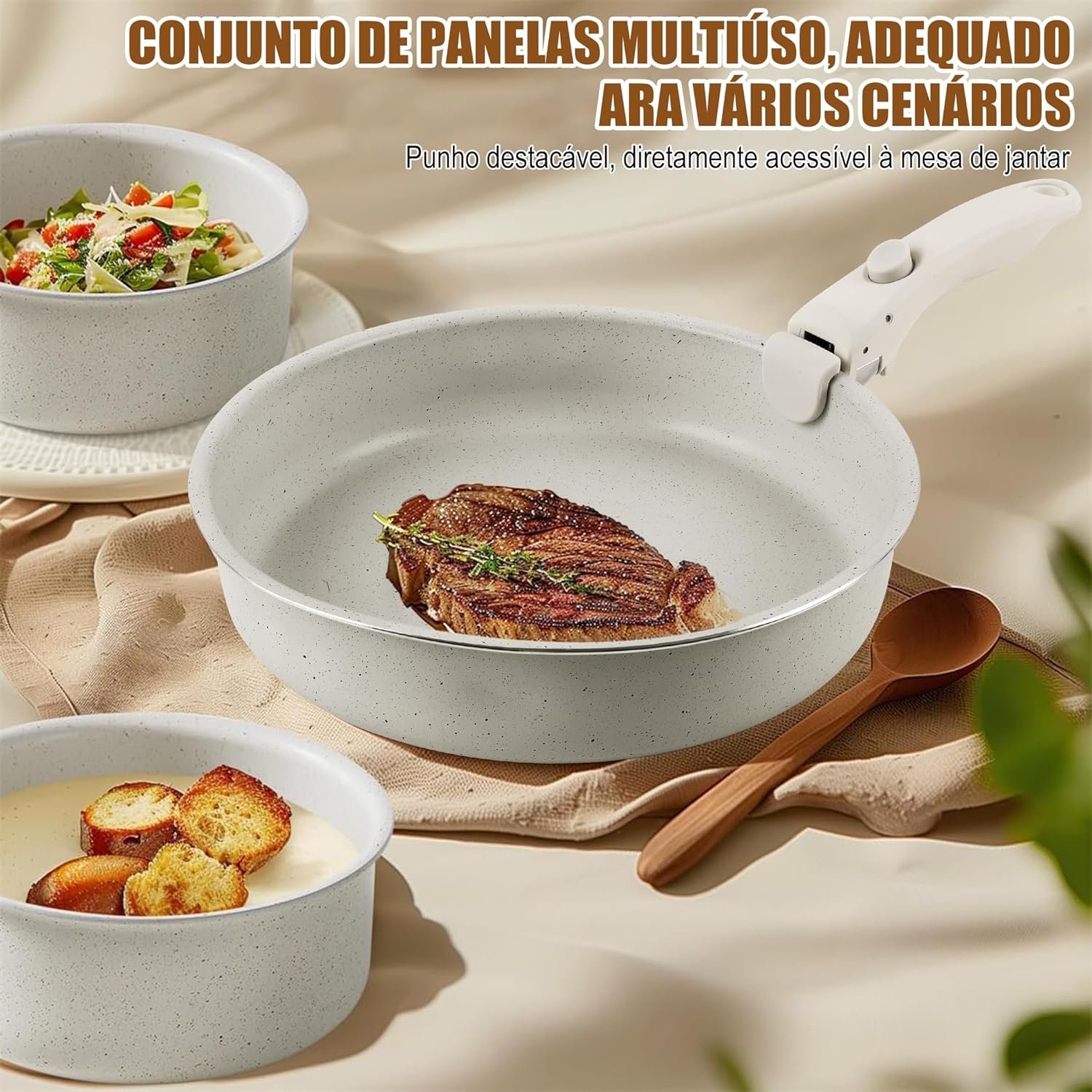 ✔️【Design Inovador com Cabo Removível】ANTUVI de Jogo de Panelas com um simples clique, o cabo sai facilmente, a panela se transforma em um prato na hora! Sirva suas refeições diretamente à mesa com praticidade e elegância,Muito adequado para uso doméstico e ao ar livre. Conveniente para a sua cozinha diária!