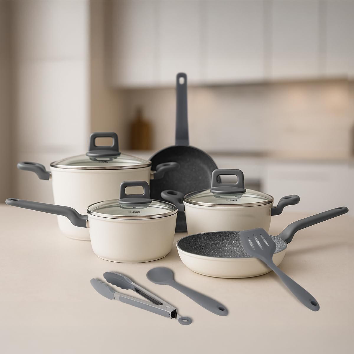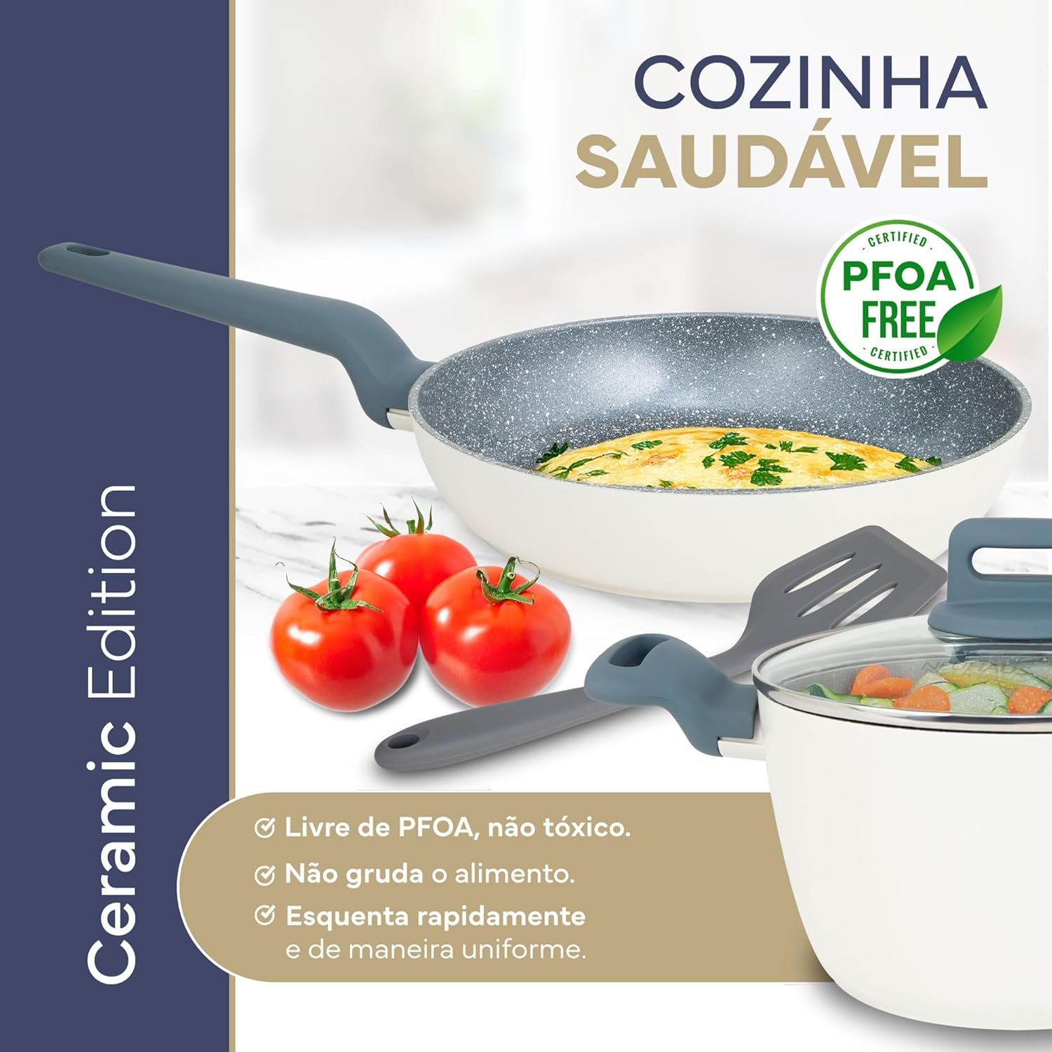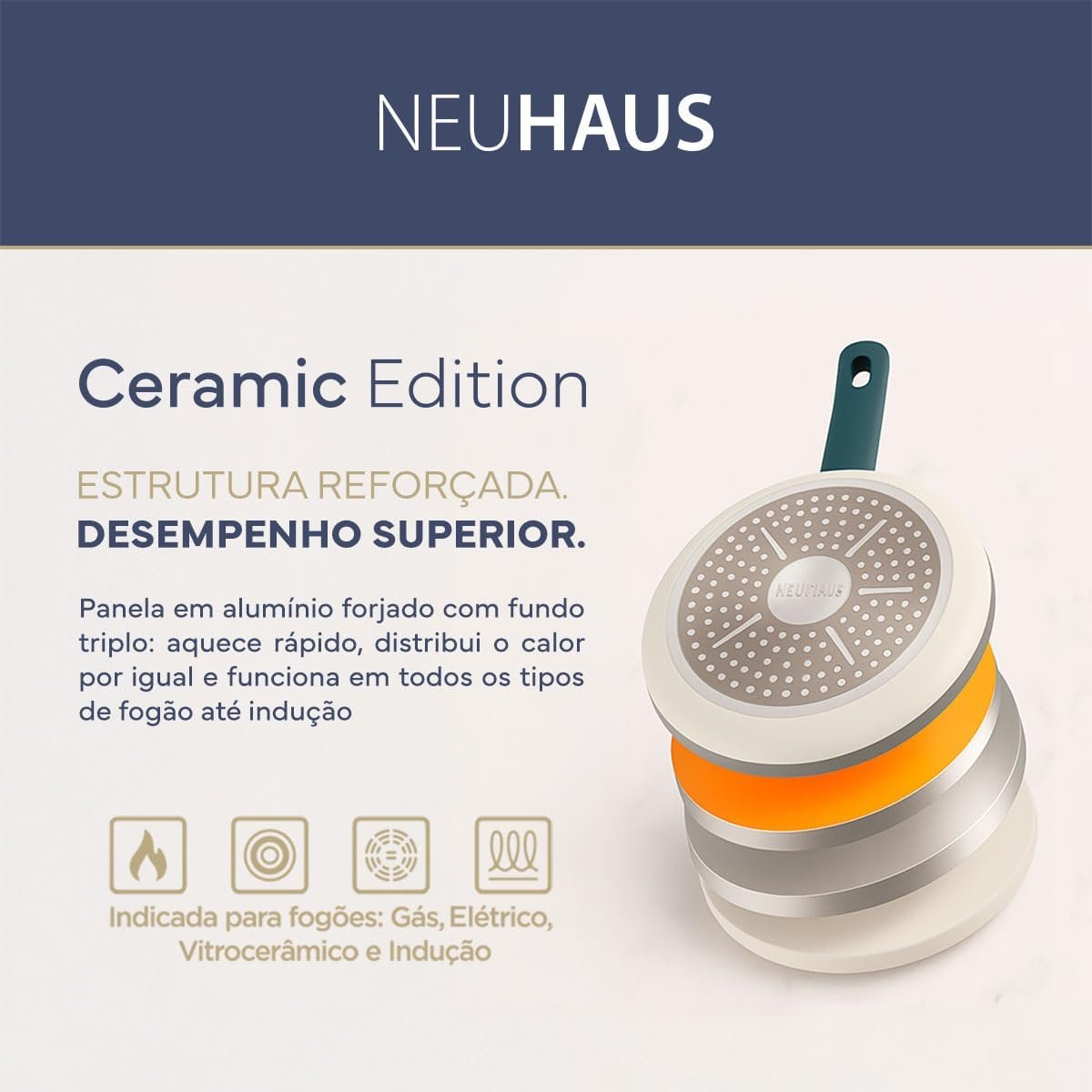 Jogo de Panelas Cerâmica Antiaderente 8 Peças – Neuhaus Ceramic Edition Off-White | Compatível com Fogão por Indução