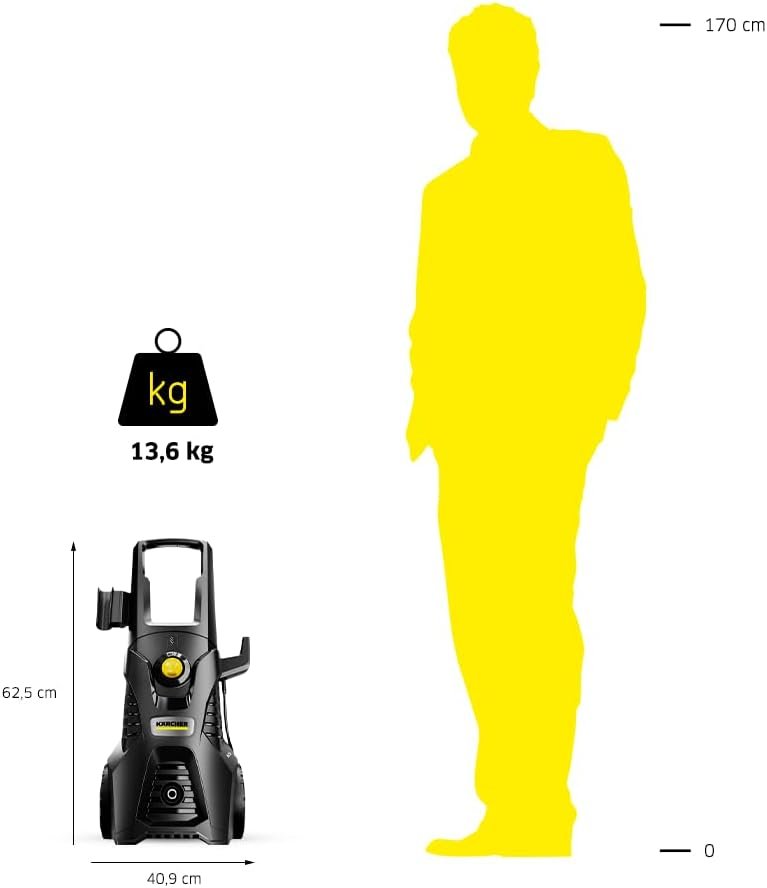A lavadora de alta pressão Kärcher K5 possui resistência, praticidade e eficiência para uma limpeza perfeita e frequente. Graças ao seu motor a indução e cabeçote de alumínio, que garantem alta durabilidade, a máquina pode ser usada por mais tempo e com maior frequência para a limpeza de jardins, veículos, vans, áreas de piscina, quintais, motos, garagens e muito mais. Possui alça e rodas que facilitam o transporte do equipamento. – Pressão de 2100 PSI. – Vazão de água de 360 litros por hora. – Alta durabilidade: Motor a indução e cabeçote de alumínio. – Alça e rodas: Maior praticidade no manuseio e facilidade no transporte. As rodas maiores evitam que a lavadora trave em degraus e buracos durante o uso. – Mangueira para sucção de detergente integrada à máquina. – Em comparação com uma mangueira de jardim, a lavadora aumenta a economia de água em 80%.