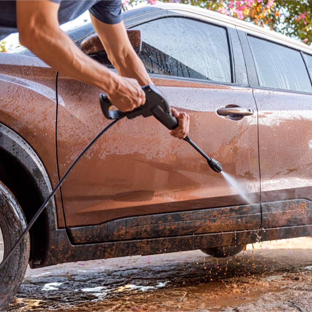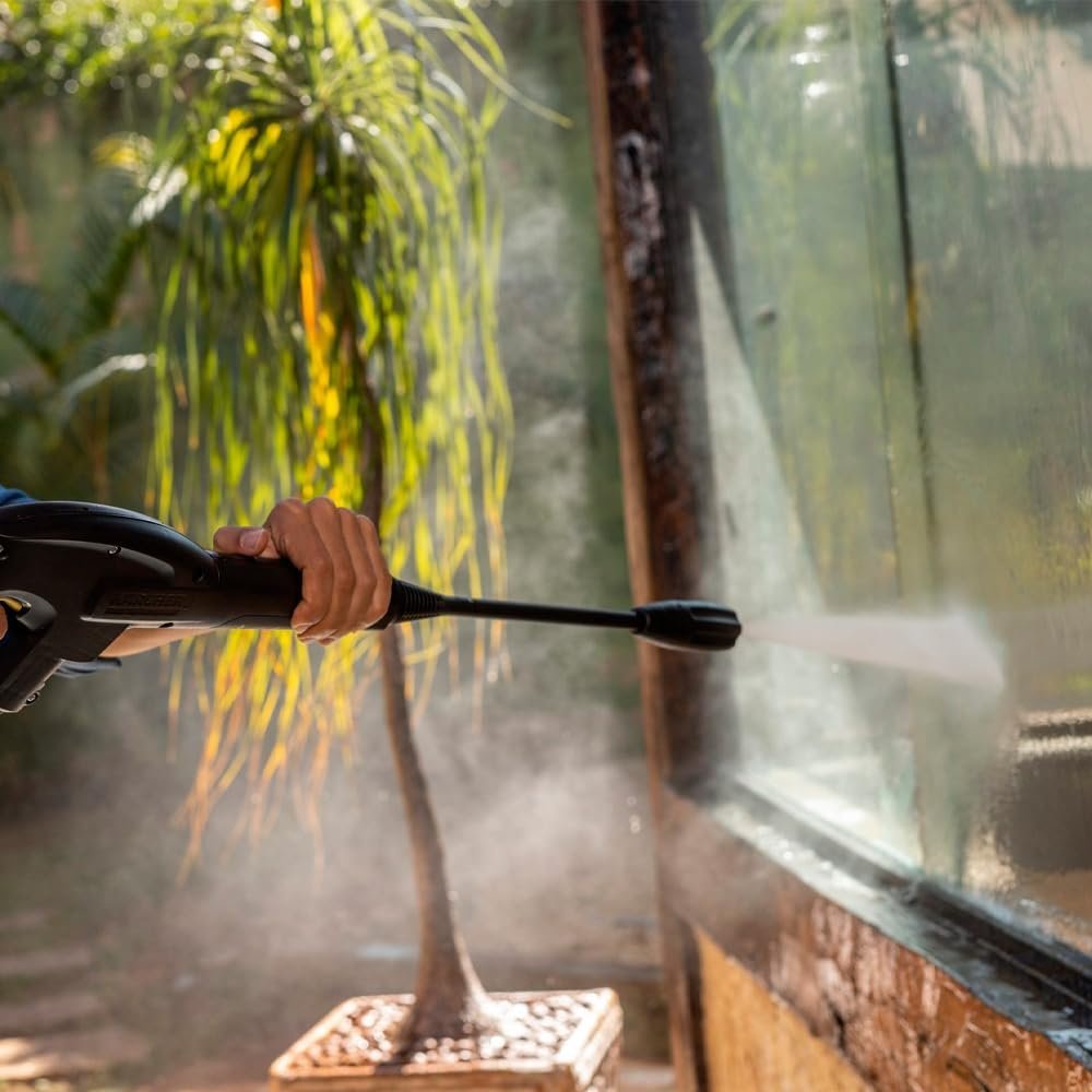 Em comparação com uma mangueira de jardim, a lavadora aumenta a economia de água em 80%.