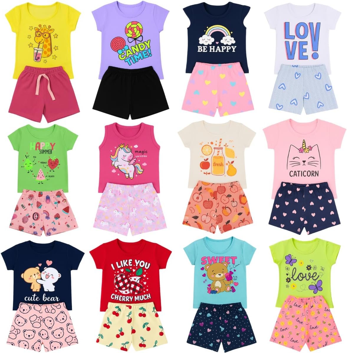 Kit 10 Peças Infantil Menina Verão Conjuntos Blusa e Short em Algodão, Roupas Leves e Confortáveis, Moda Infantil Feminina, Looks Casuais e Coloridos 1 a 8 Anos