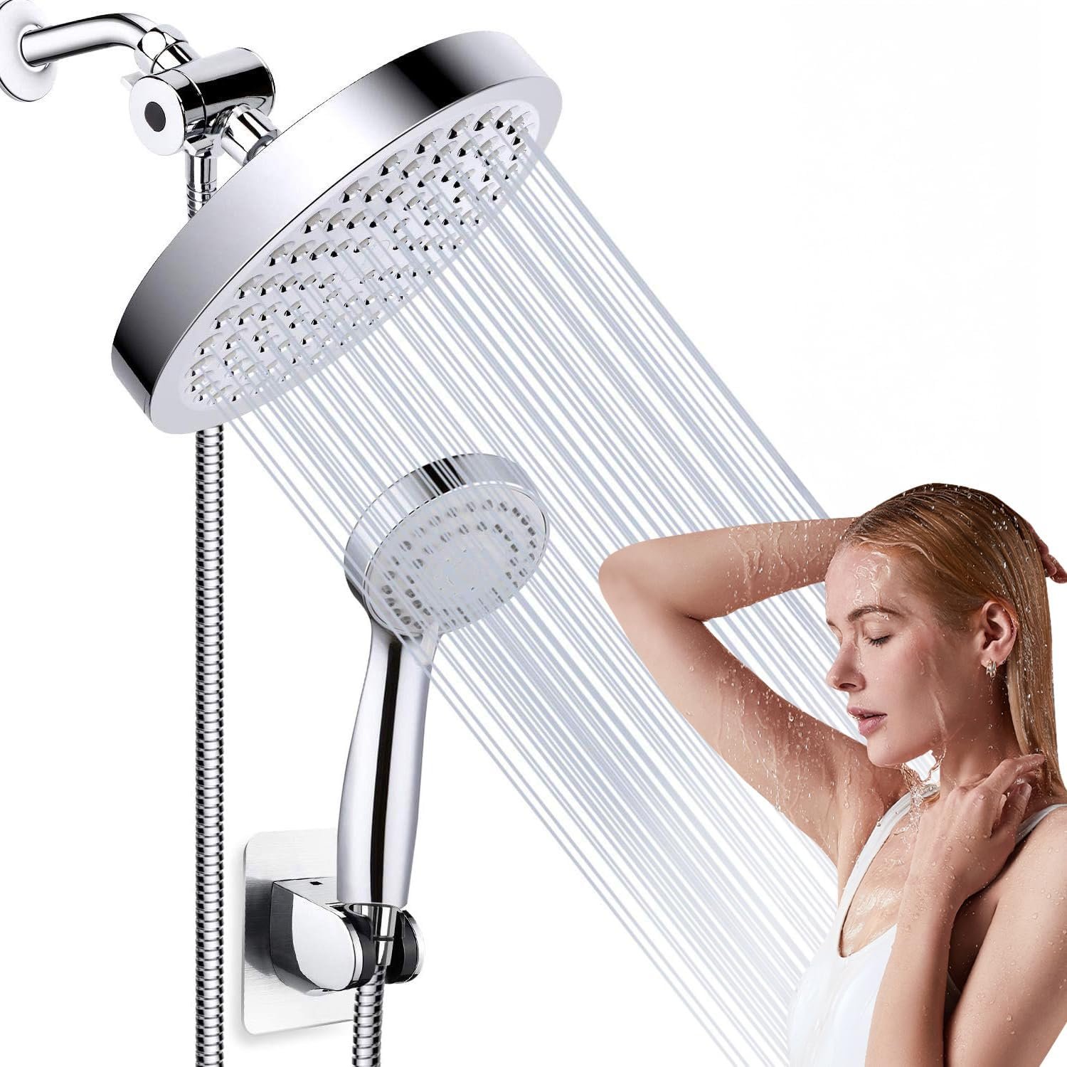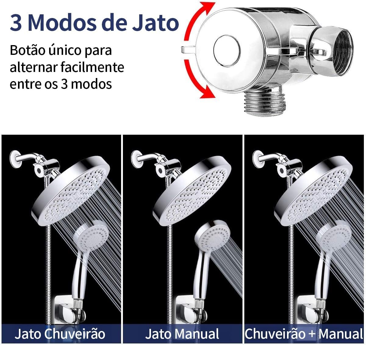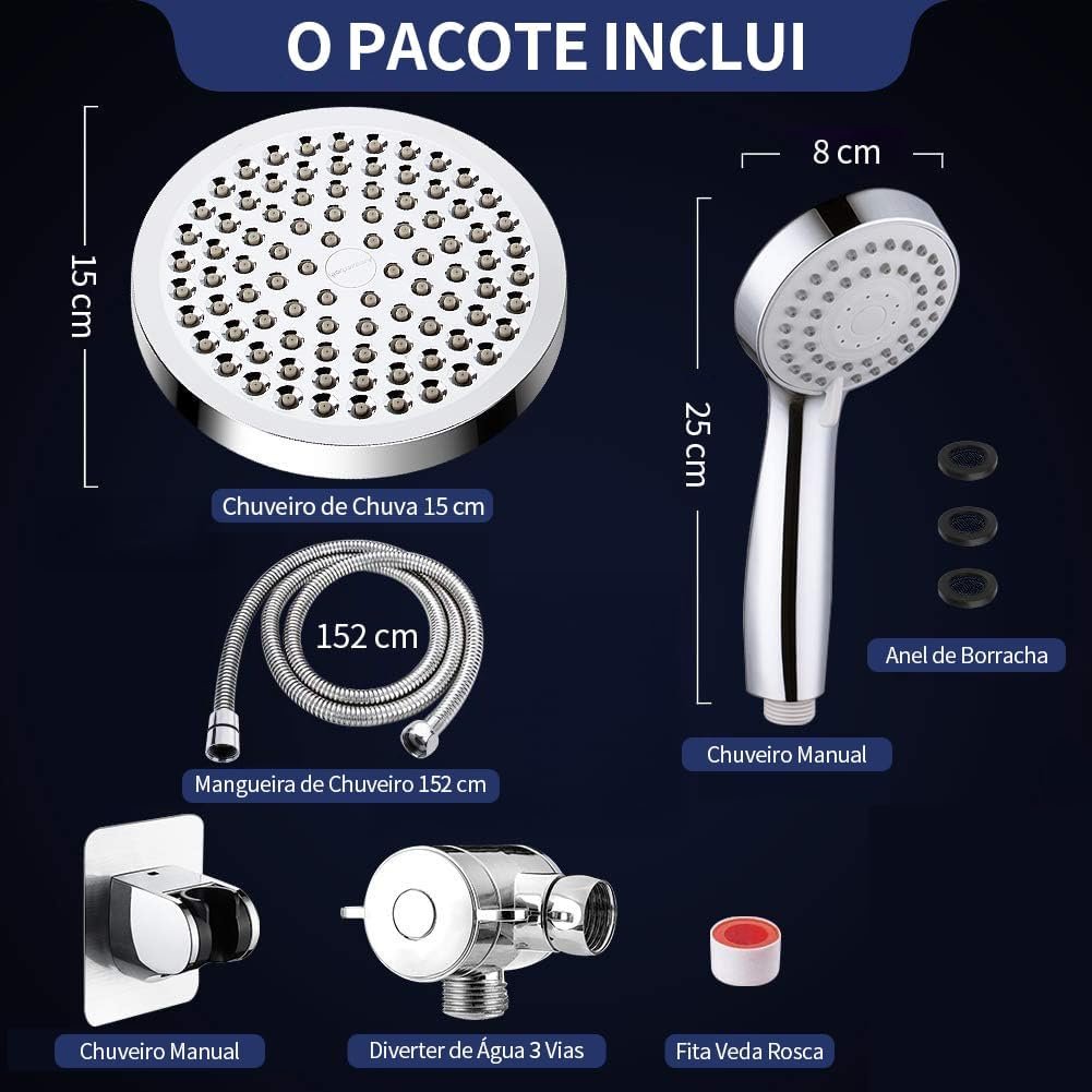 【3 Formas de Combinação e Múltiplos Modos de Spray】O design combinado dos dua chuveiros manuais oferece 3 formas diferentes de uso: Modo Chuva, Modo Ducha Manual e Modo Chuva + Ducha Manual. Você pode escolher usar a ducha manual de chuva maior, a ducha manual menor com 3 modos de spray e filtro, ou usar ambas juntas.
