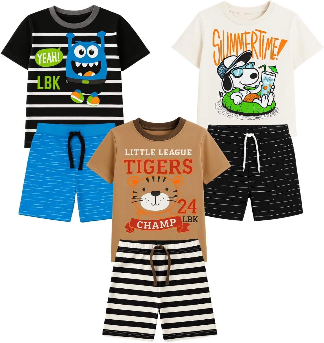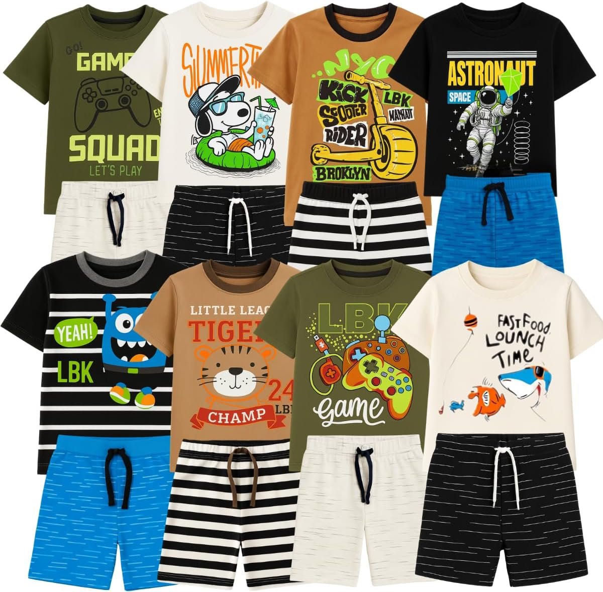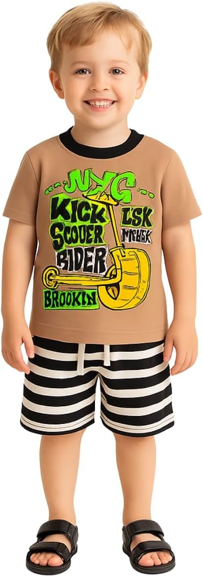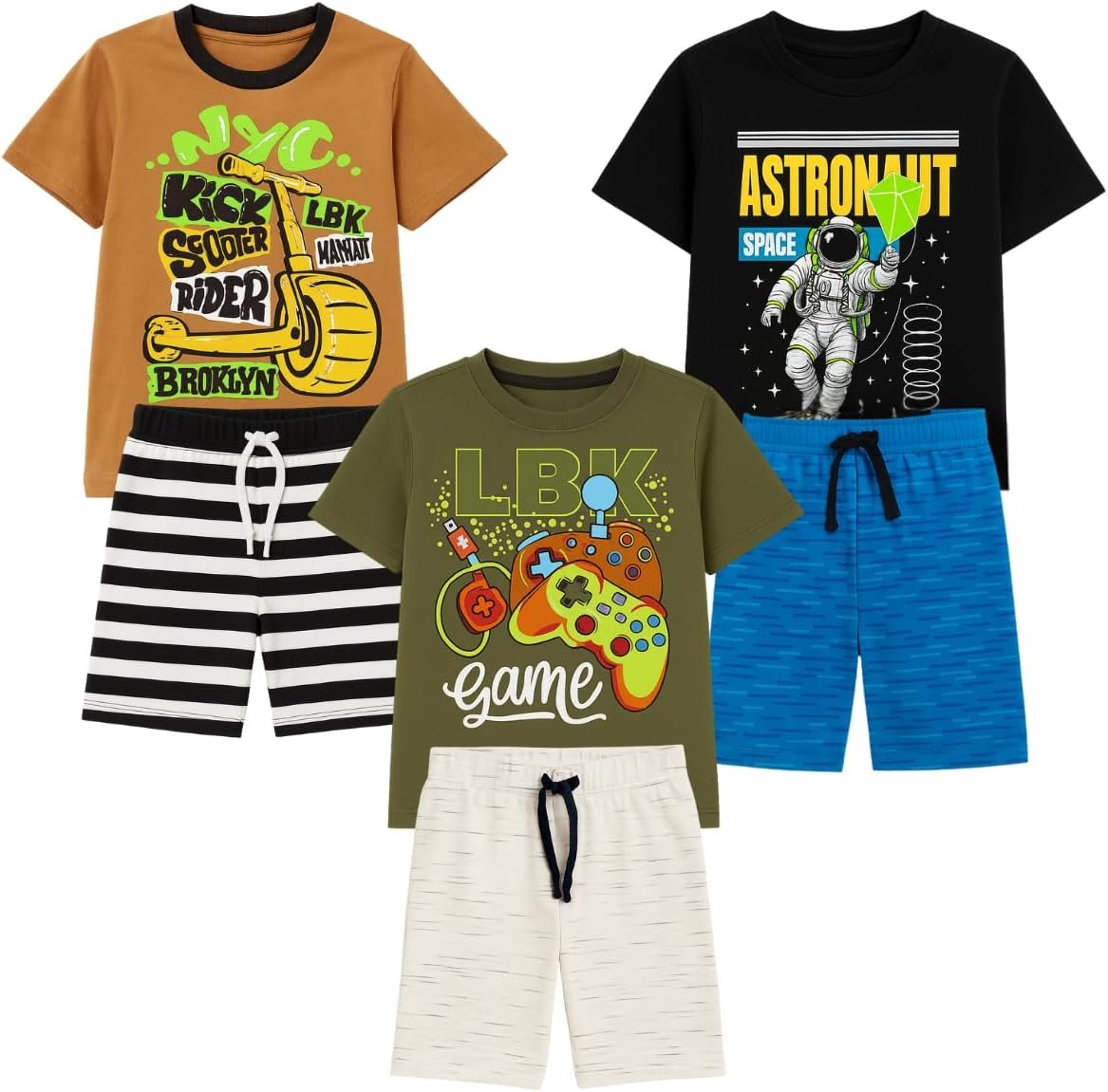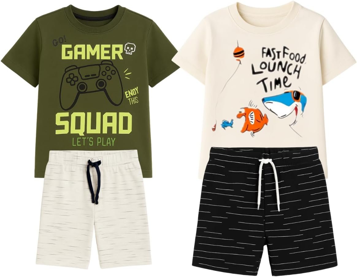 Kit sortido 4 Peças Conjunto Menino Infantil -2 Camisetas + 2 Bermudas – 2 Conjuntos Sortidos Menino
