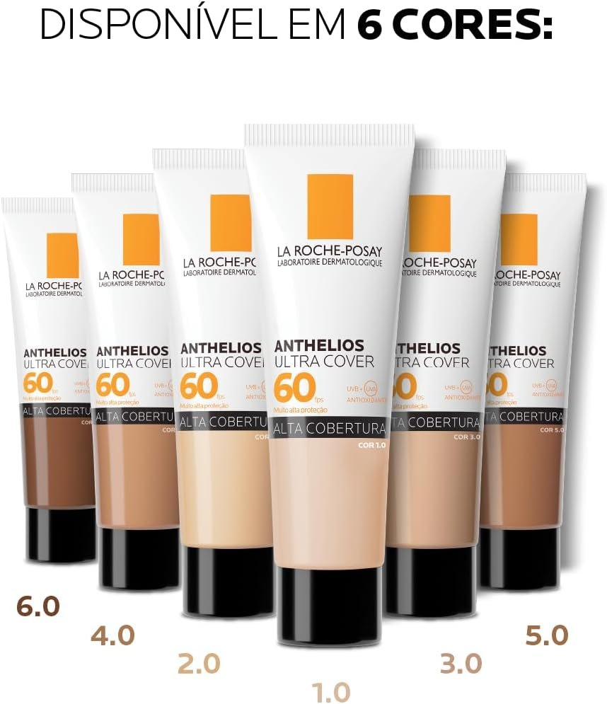 La Roche-Posay, Ultra Cover, Protetor Solar com Cor e Performance de Maquiagem, 12h de cobertura de base em uma única camada, Textura Fluida, Oil free, Toque Seco, FPS60, 30g