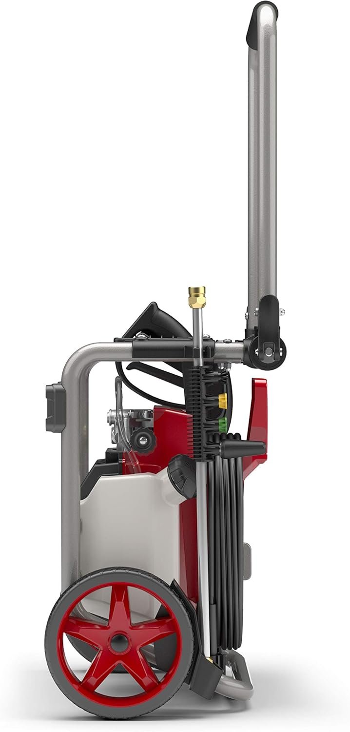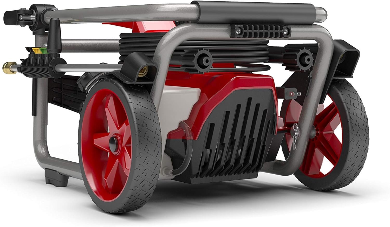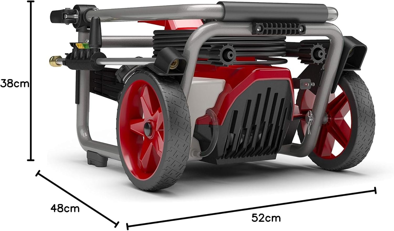 127v vazão de 3,8 litros/minuto 2000 PSI bico turbo com 4 opções motor por indução mangueira de 7,6 metros bomba tipo axial roda de 8″ cabo elétrico de 5 metros bomba axial tanque de detergente 1,2 litros bomba axial frequência 60Hz