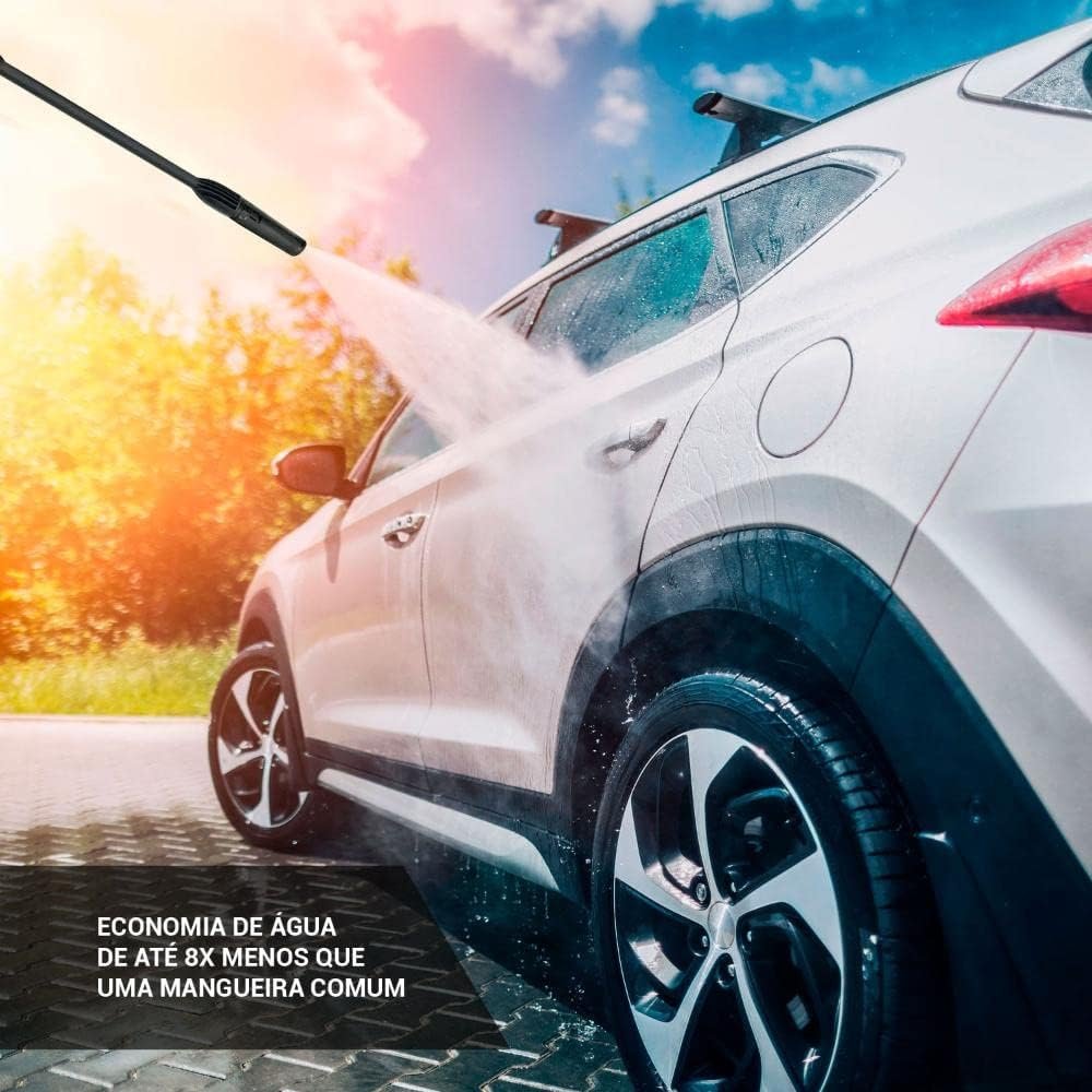 Seu cabo de força de longo comprimento (5m) facilita a limpeza de áreas externas, permitindo a conexão com a luz mesmo estando distante de uma tomada. Possui suporte para a pistola de limpeza e sistema de proteção que desliga o motor ao soltar o gatilho, garantindo um aumento da durabilidade e da vida útil do produto.
