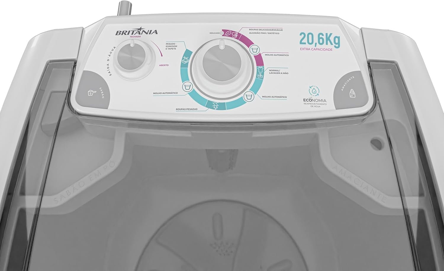 Capacidade de 20,6kg: Cesto extragrande para até 20,6kgs. Lave de roupas delicadas a edredons. Dispenser para amaciante e sabão em pó: Liberação dos produtos no momento e quantidade certa durante a lavagem, evitando manchas. Classificação energética A: Baixíssimo consumo de energia elétrica e água. 7 Programas de lavagem: Controle o ciclo ideal para suas roupas delicadas e pesadas, deixe de molho e controle o tempo direto no painel. Ciclo tira manchas: Ideal para lavar as roupas encardidas em uma única lavagem com mais praticidade e rapidez. CARACTERISICAS TÉCNICAS • Capacidade de Lavagem de 20,6Kg; • 7 Programas de Lavagem – para escolher o programa em função do tipo de roupa e nível de sujeira; • Função Timer; • Função Dreno; • Tampa Transparente; • Filtragem de fiapos; • Dispenser com 2 compartimentos para sabão e amaciante; • Painel fácil de usar; • Desligamento automático; • Disponível em 127V e 220V.