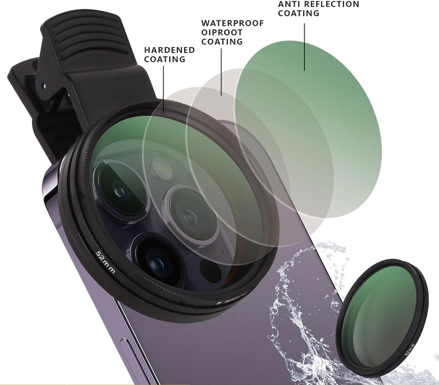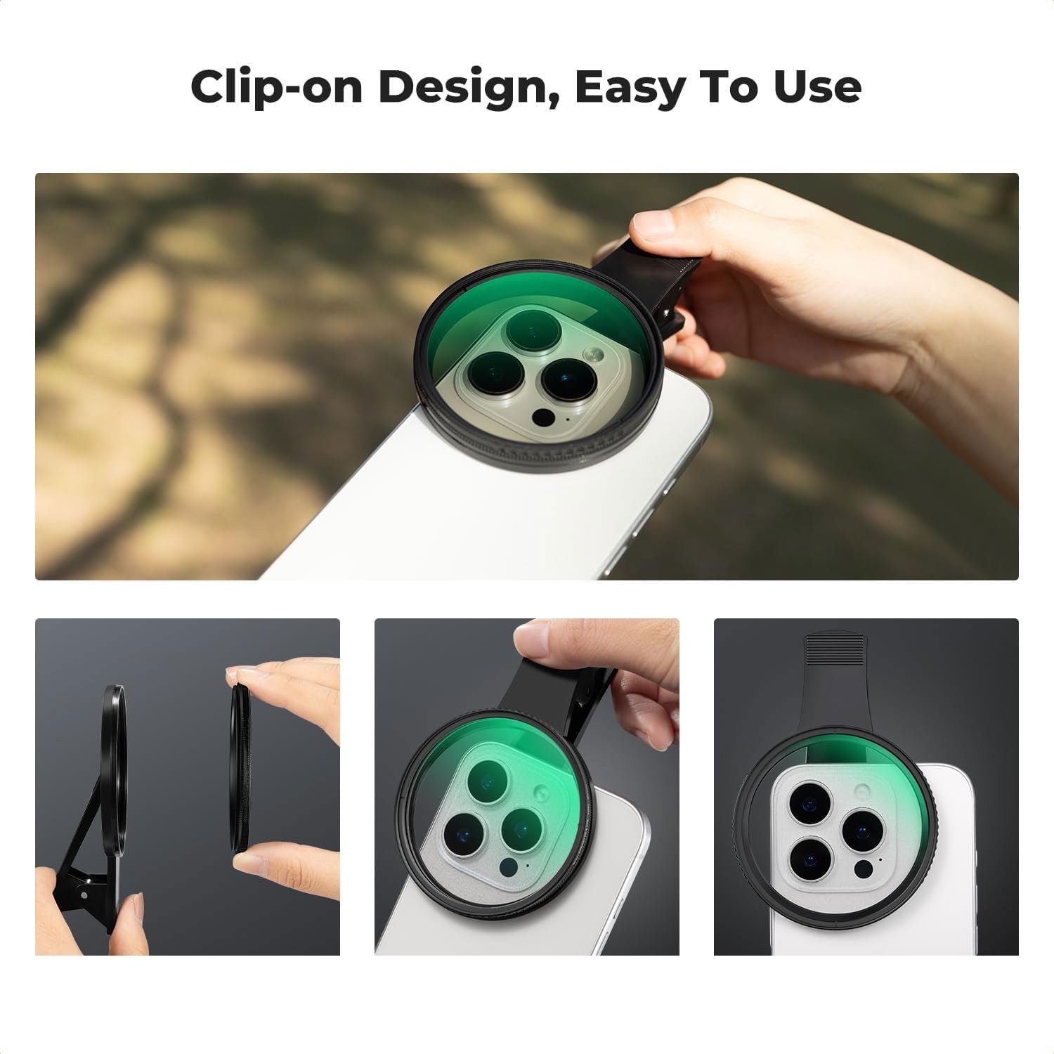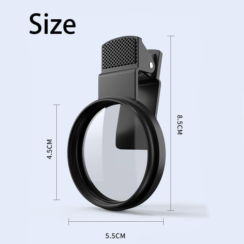 Lente de câmera de telefone de 52 mm com clipe CPL com filtro polarizador, compatível com iPhone, Samsung, reduz o brilho e os reflexos