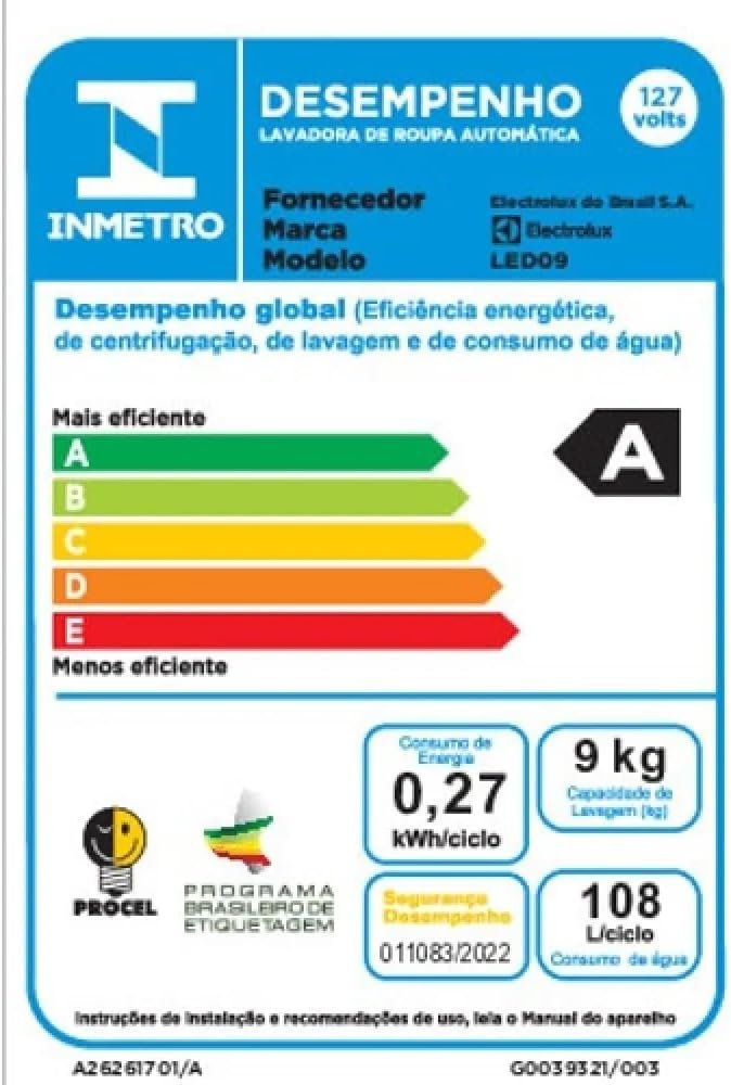 Máquina de Lavar 9kg Electrolux Efficient Care (LED09) 127V
