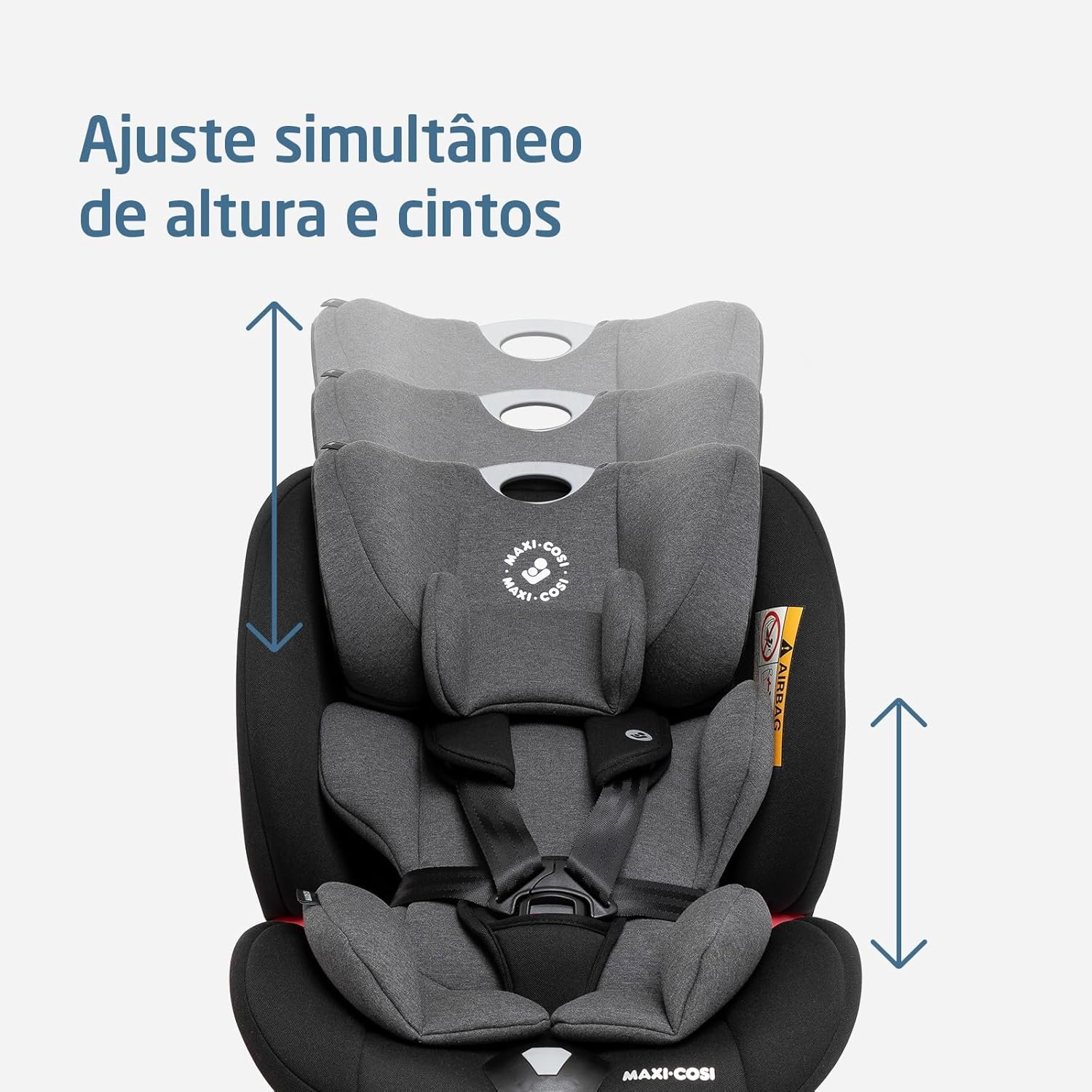Apoio de cabeça e cinto de segurança ajustáveis simultaneamente