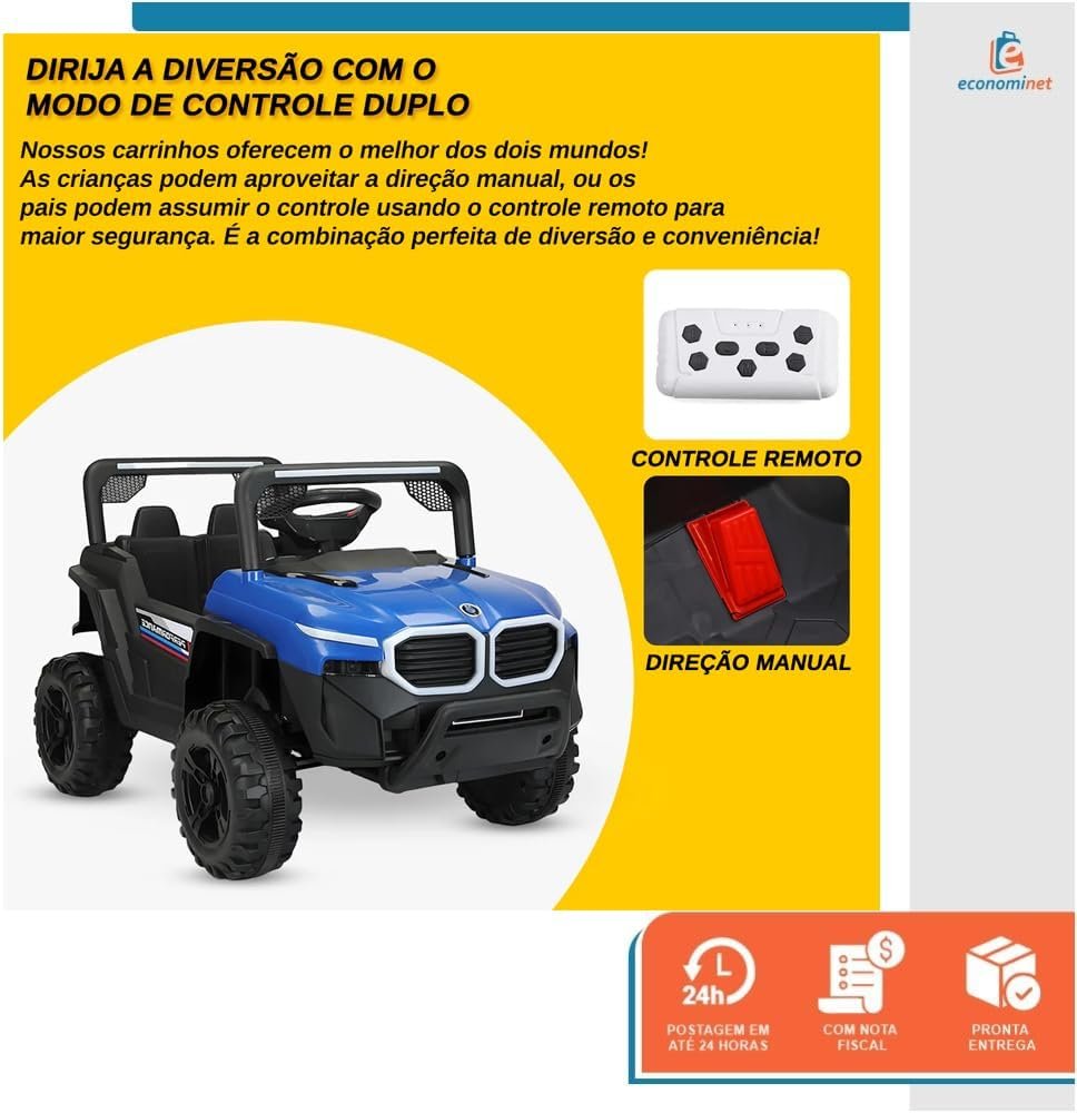 🛡️ Segurança em primeiro lugar – Controle remoto para supervisão dos pais, velocidade ajustável e certificação INMETRO.