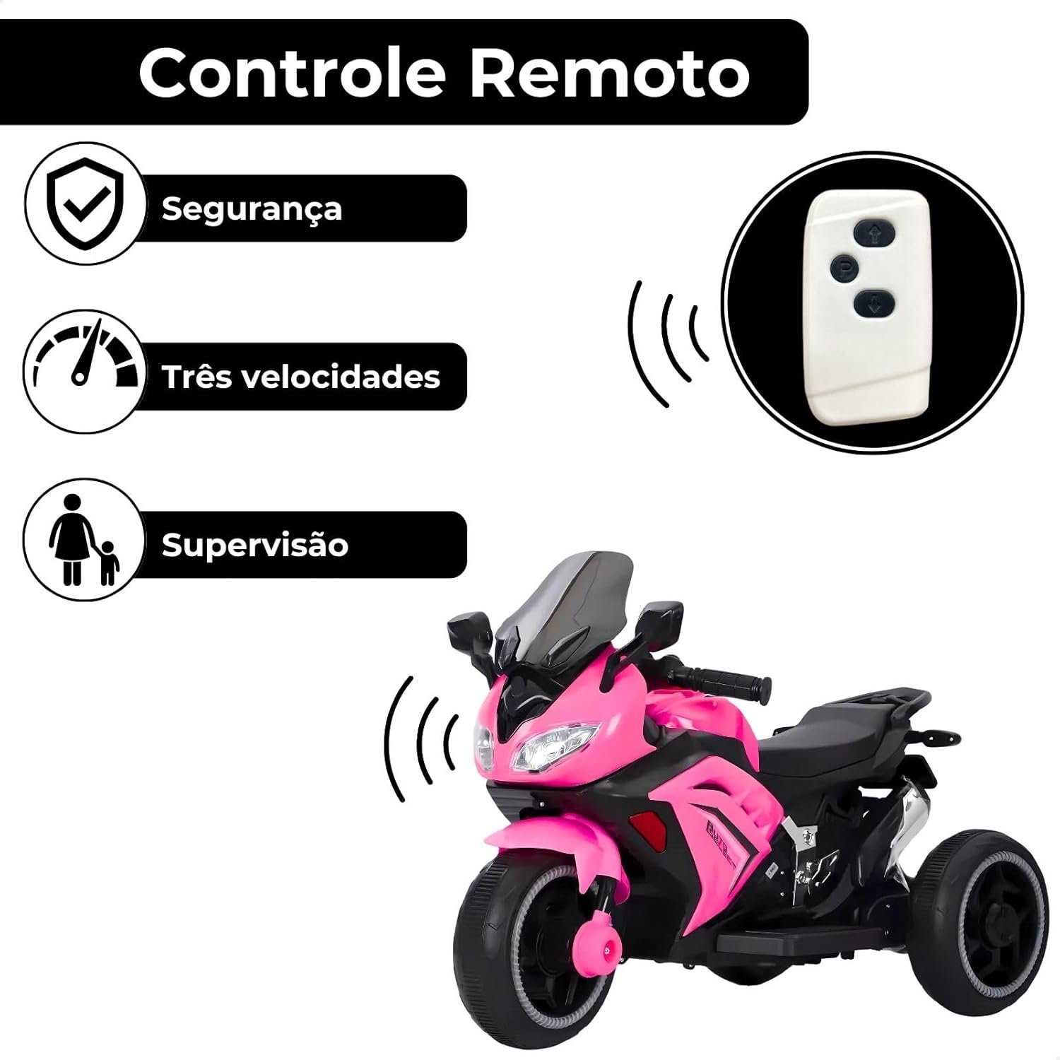 cCONTROLE REMOTO PARENTAL: Oferece total controle aos pais, com um controle remoto de longo alcance (10m) e 3 velocidades ajustáveis para a segurança do seu filho.