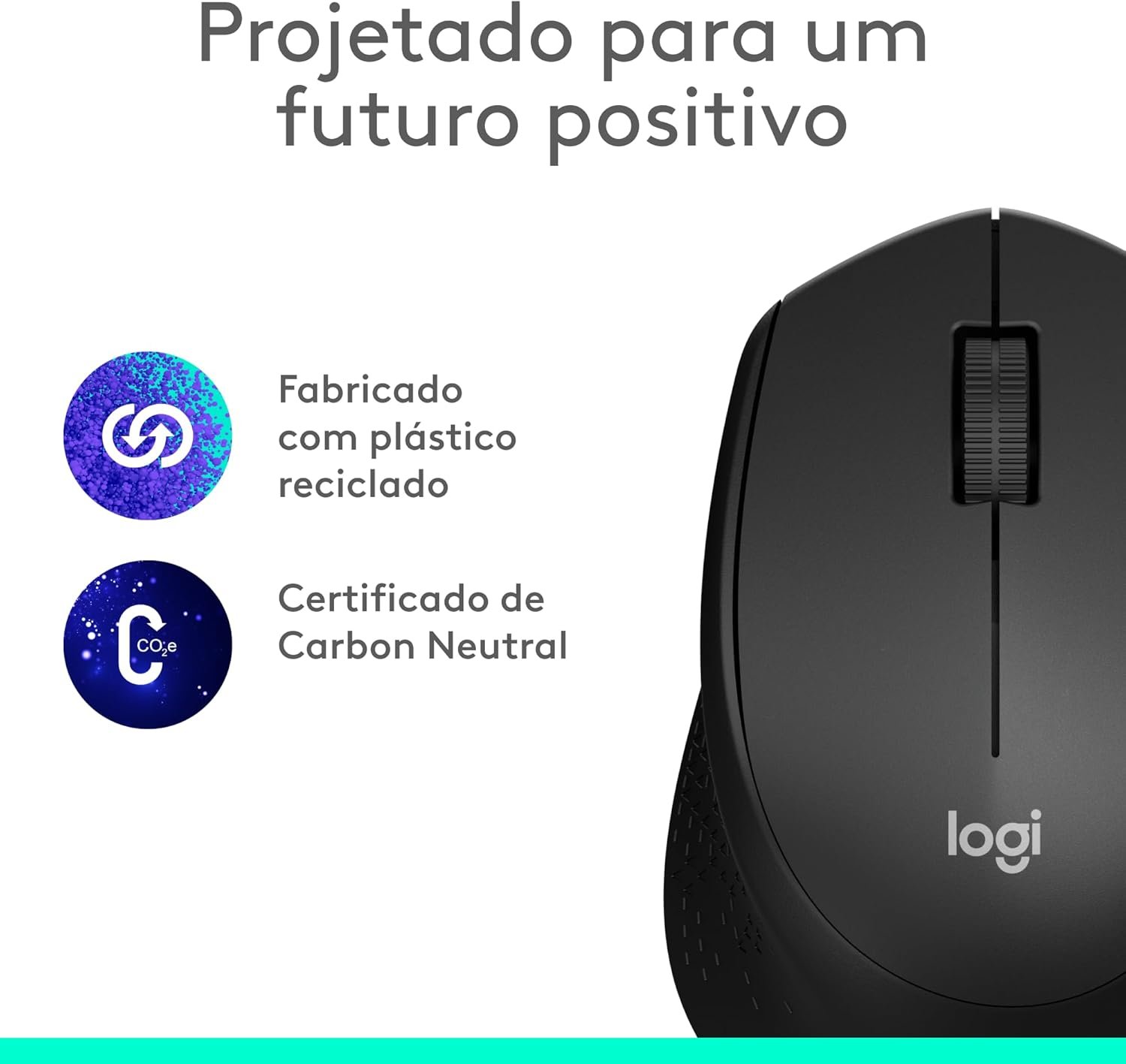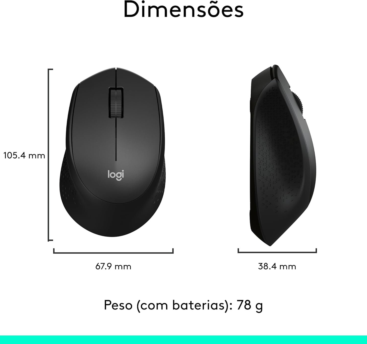 Mouse sem fio Logitech M280 com Conexão USB e Pilha Inclusa – Preto