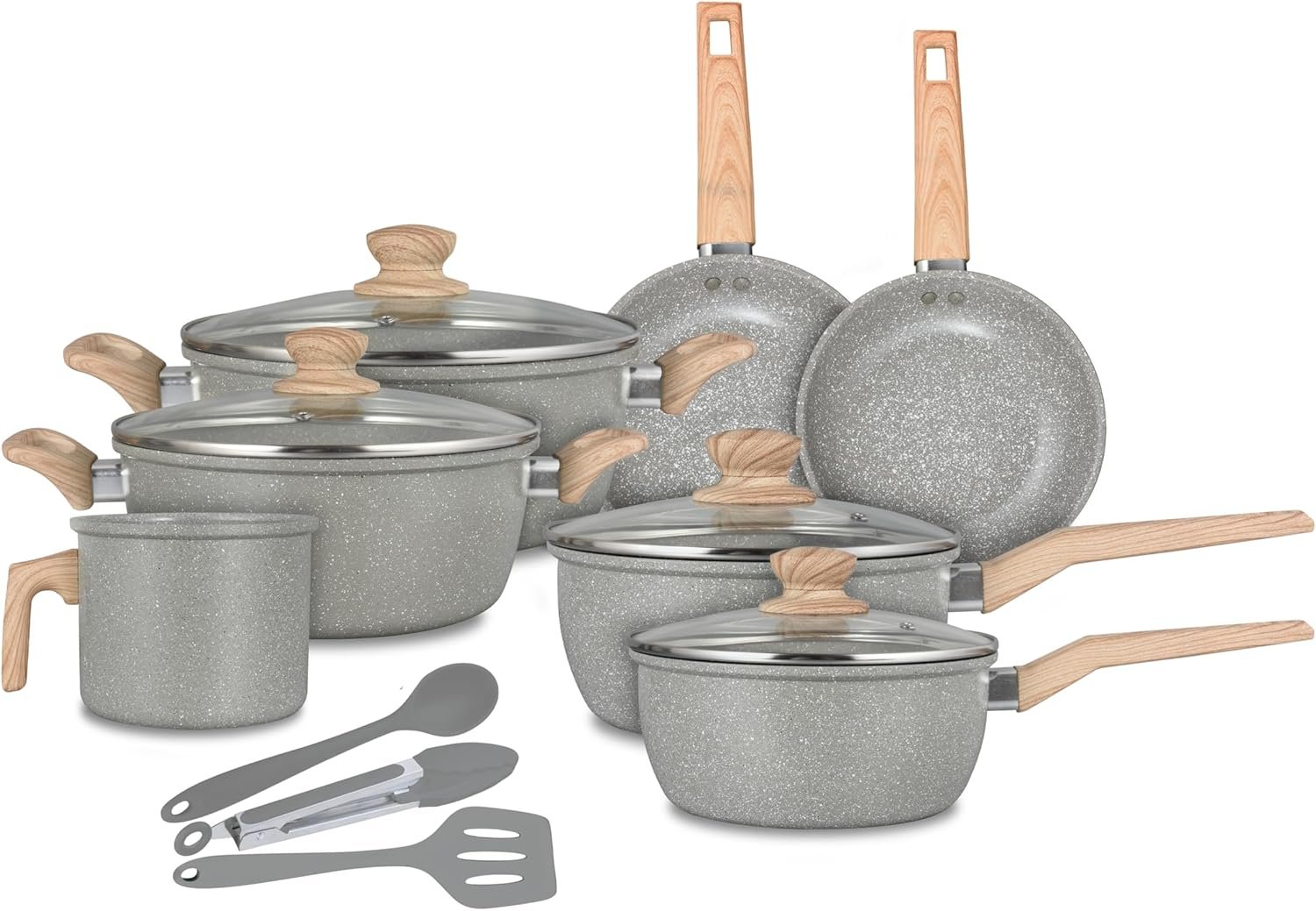 NEUHAUS JOGO DE PANELAS 10 PEÇAS COM REVESTIMENTO EM CERÂMICA E ACESSÓRIOS EM SILICONE MARBLE LIFE – DARK GREY