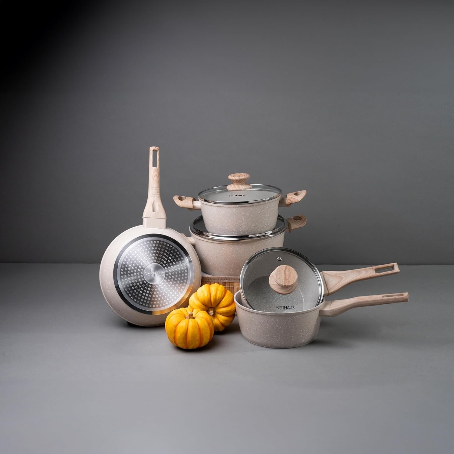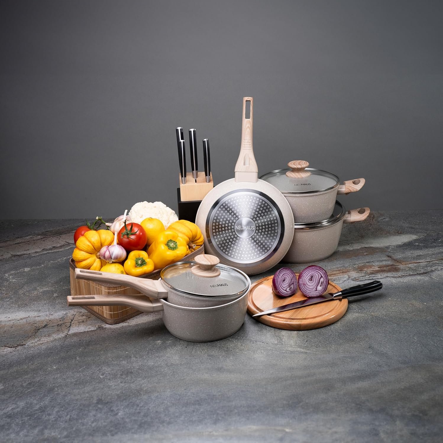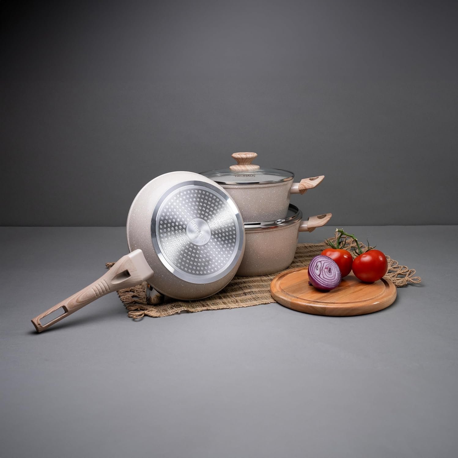 NEUHAUS Jogo de Panelas 5 Peças com Revestimento Cerâmico + Balança Digital Marble Life – Vanilla
