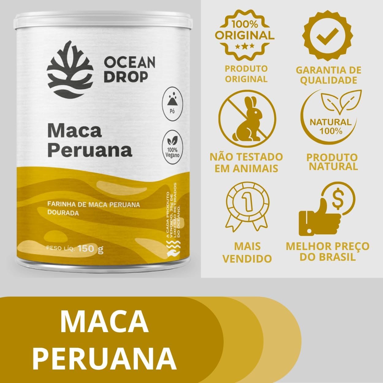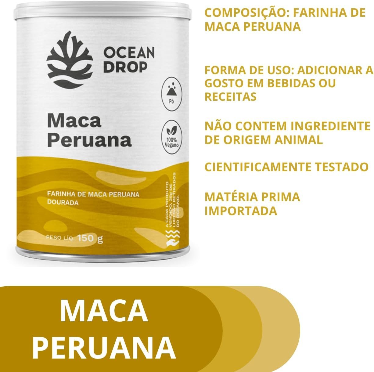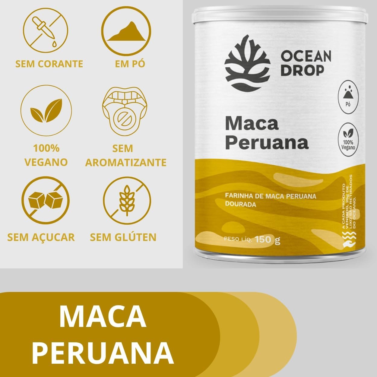 Ocean Drop Maca Peruana Dourada em Pó, 100% Vegano, 150g