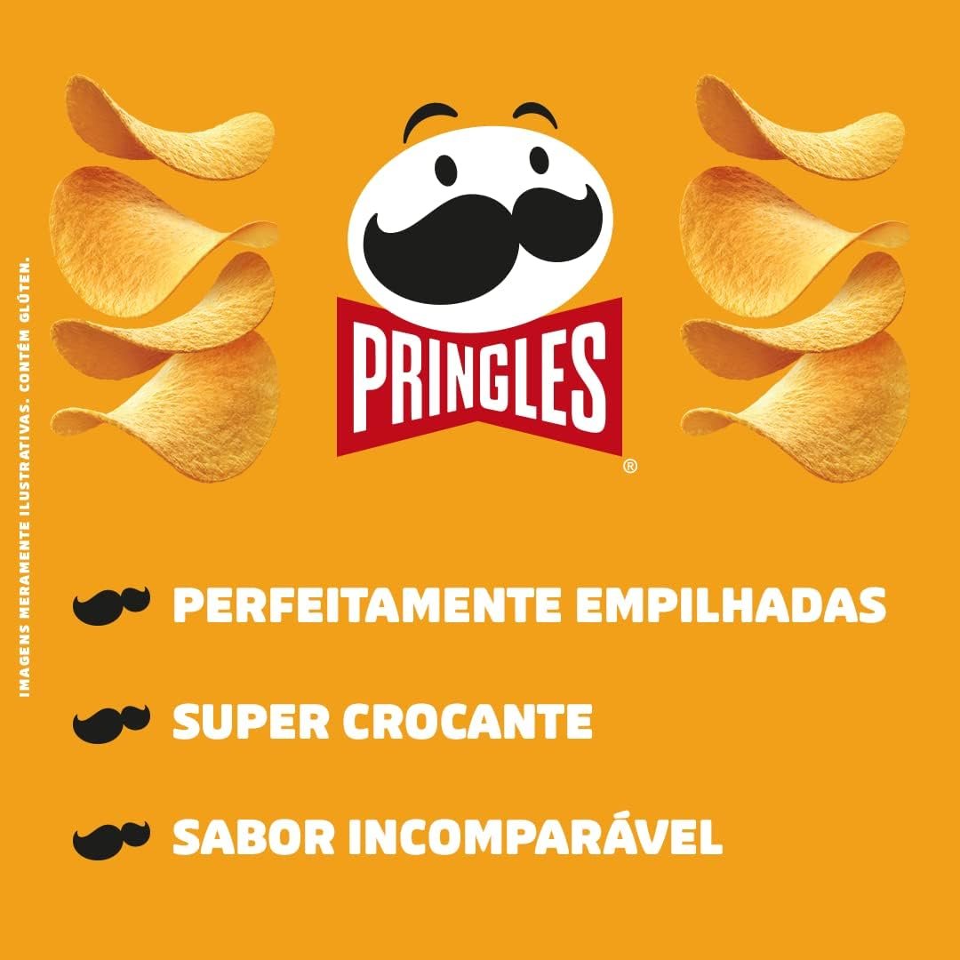 O salgadinho Batata Frita Pringles®, vem em sua icônica lata para proporcionar uma experiência incomparável. É o salgadinho que foi feito para você! Com suas batatas que encaixam perfeitamente na sua língua, e que te surpreende a cada mordida com uma crocância incomparável e um sabor único. Pringles® é autêntica, divertida e surpreendente. Suas batatas perfeitamente empilhadas, te permitem levá-las para todos os lugares. Em meio à correria do dia a dia, ele é uma pausa merecida, um momento de relaxamento que revigora e renova suas energias. Mas também ideal para dividir com a galera, e tornar todos os encontros mais especiais. O sabor Queijo tem uma crocância surpreendente com um sabor único para os apaixonados por queijo. Desfrute deste salgadinho na versão Queijo ou explore os sabores Original, Creme e Cebola, Churrasco e Cheddar e Bacon.Dê um pop na sua mente com Pringles®!
