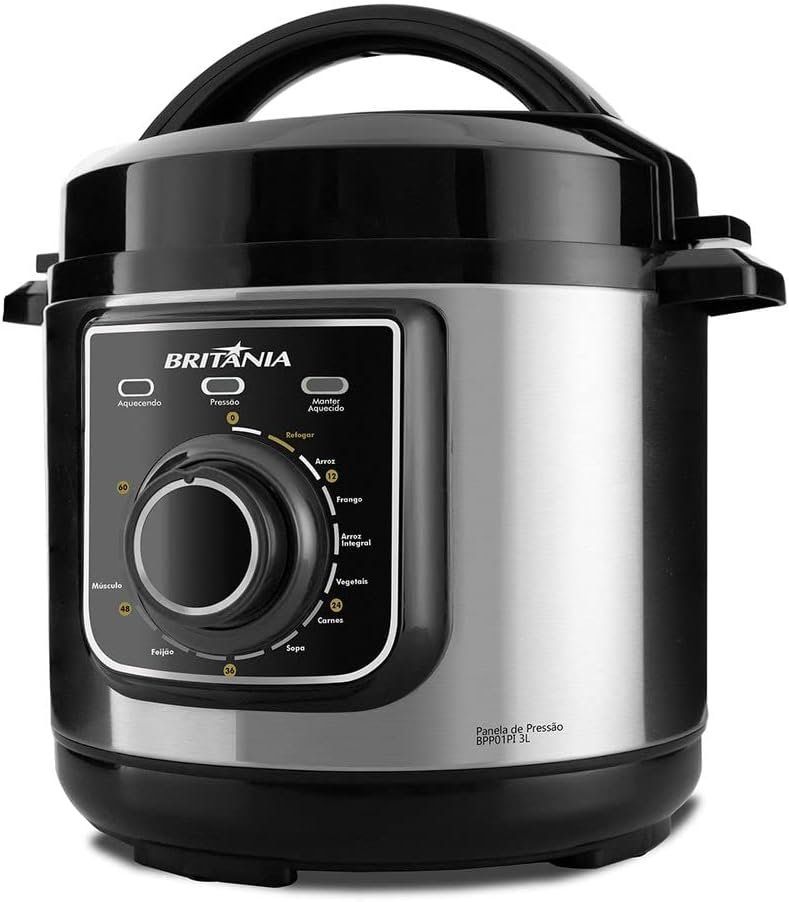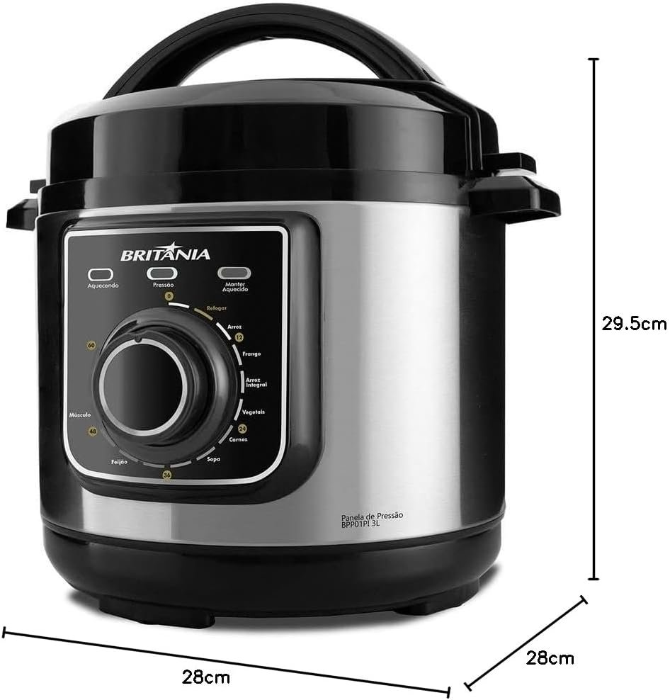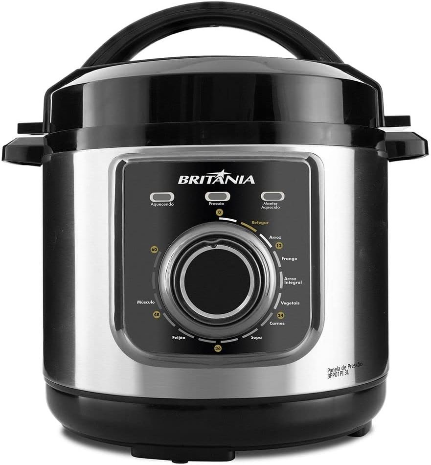 A Panela de Pressão Multifuncional Britânia BPP01PI vai tornar a sua cozinha muito mais completa e prática! Ela tem capacidade de 3L, prática para receitas tamanho família! Ela também conta com 8 sistemas de segurança e 9 funções de cozimento, oferecendo muito mais segurança e opções. Além disso, seu acabamento em inox oferece maior resistência e durabilidade, além de muito mais estilo para a sua cozinha!