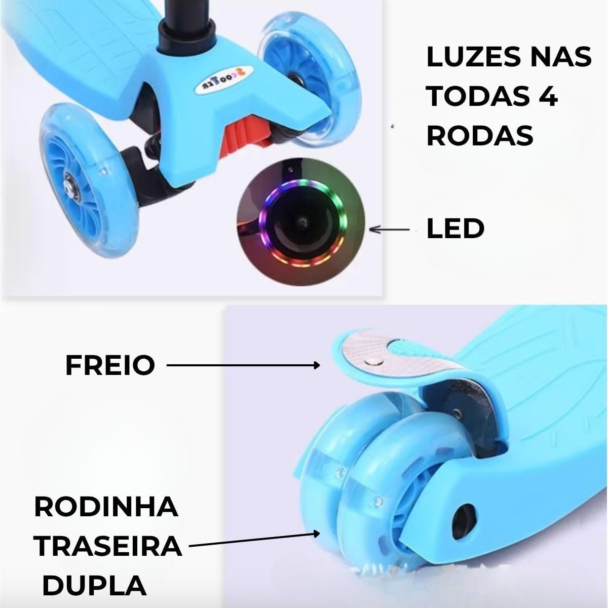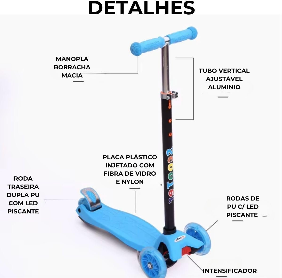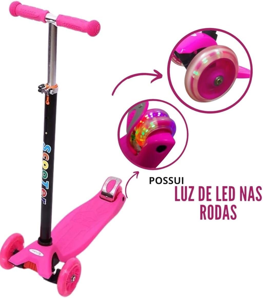 Com design moderno e cores vibrantes, este patinete é perfeito para crianças que adoram se aventurar com estilo. As rodas de LED iluminam o caminho, proporcionando diversão e segurança em cada passeio.