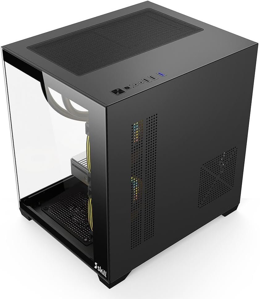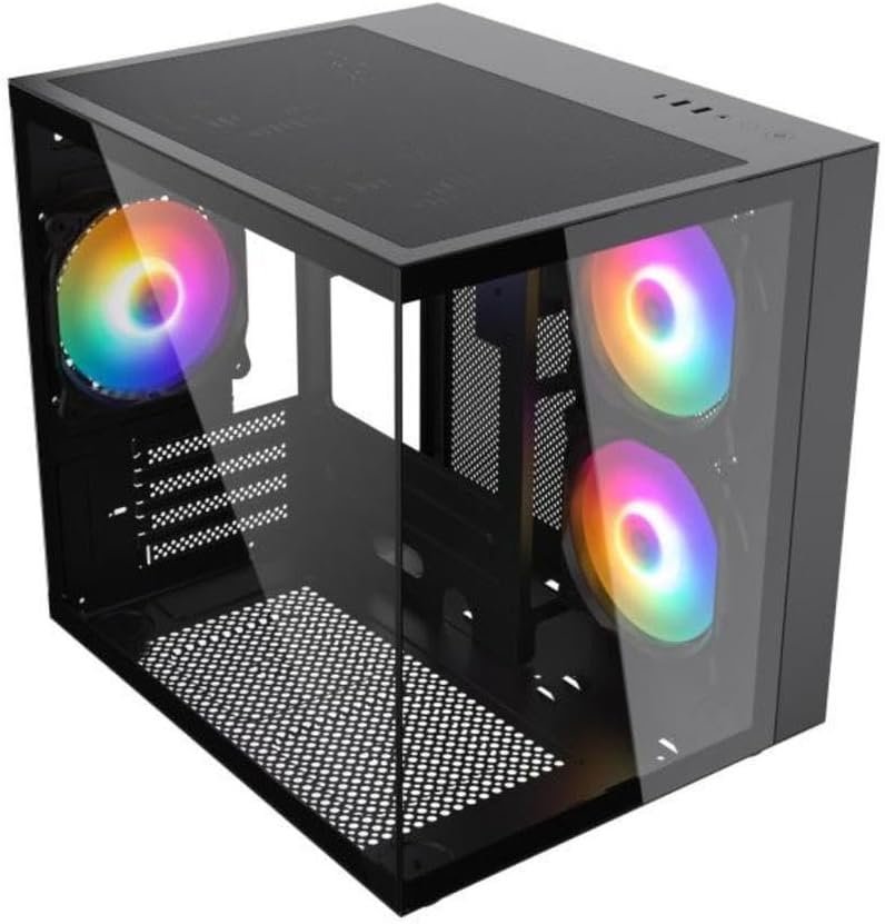 Design Premium: Gabinete Aquarium com vidro temperado e RGB. Estilo e fluxo de ar superior.