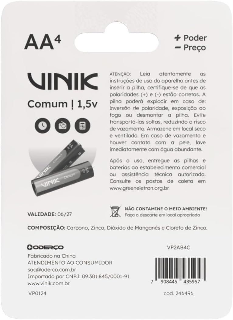 PILHA COMUM AA C/4 1.5V – VP2AB4C
