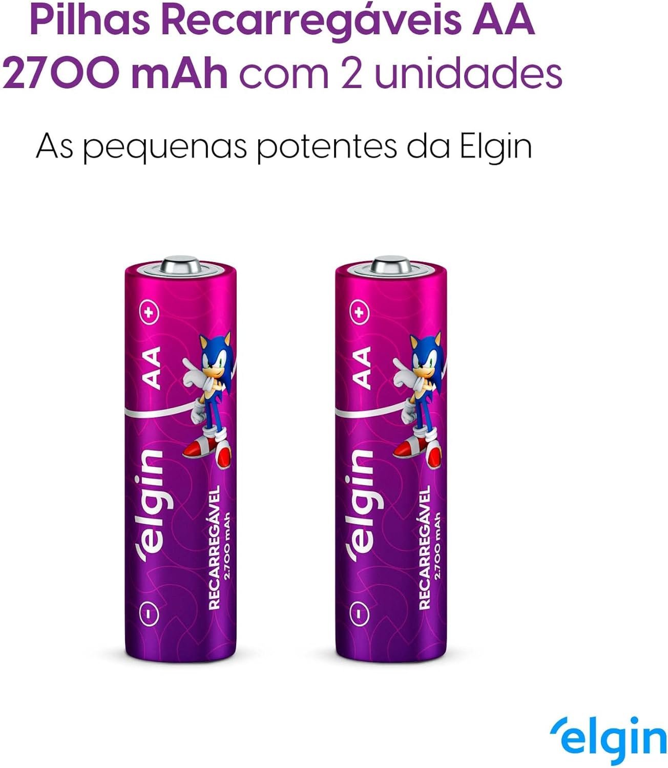 As pilhas recarregáveis Elgin têm parceria com a Sonic the Hedgehog e foram desenvolvidas nos mais altos padrões de qualidade para garantir o funcionamento dos dispositivos por mais tempo com mais estabilidade. Elas permitem até 1000 recargas, tornando um produto além de econômico, muito sustentável. Entre 11 marcas de pilhas do mercado avaliadas em testes do INMETRO, as pilhas Elgin apresentaram um resultado excelente na relação custo por hora útil. Além disso, elas são testadas periodicamente por laboratórios credenciados pelo INMETRO, para garantir a qualidade e conformidade com a resolução Conama 401.