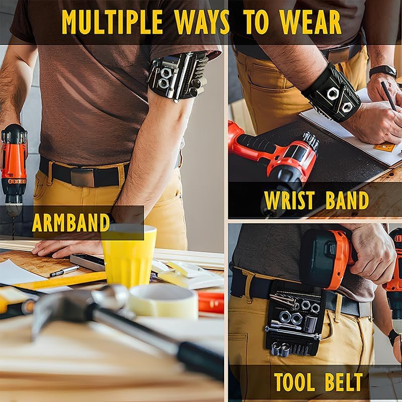 Pulseira magnética para segurar parafusos, pregos, brocas, cinto de ferramentas ímã presente de pulso para pai, marido, avô, faz-tudo, homens, mulheres