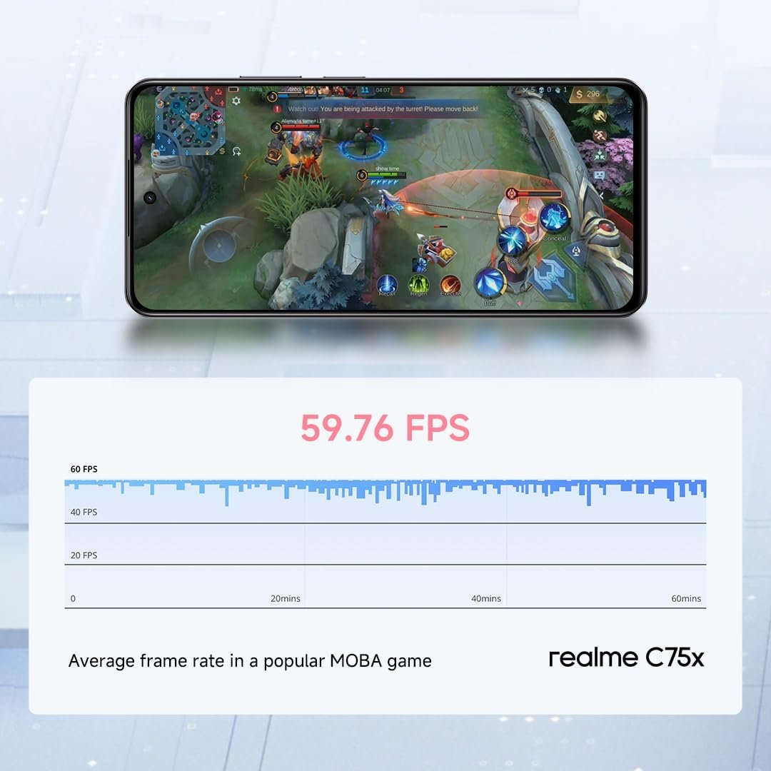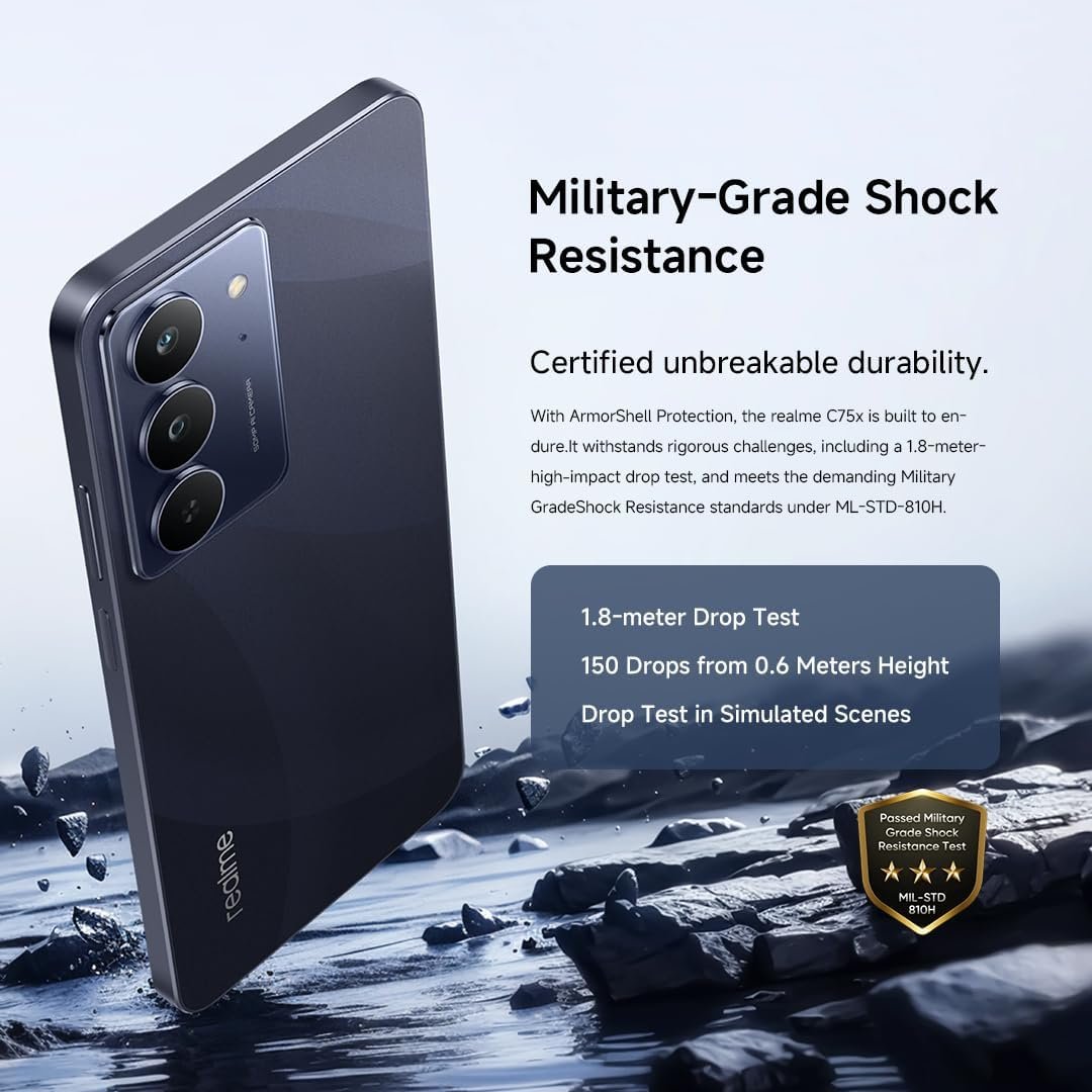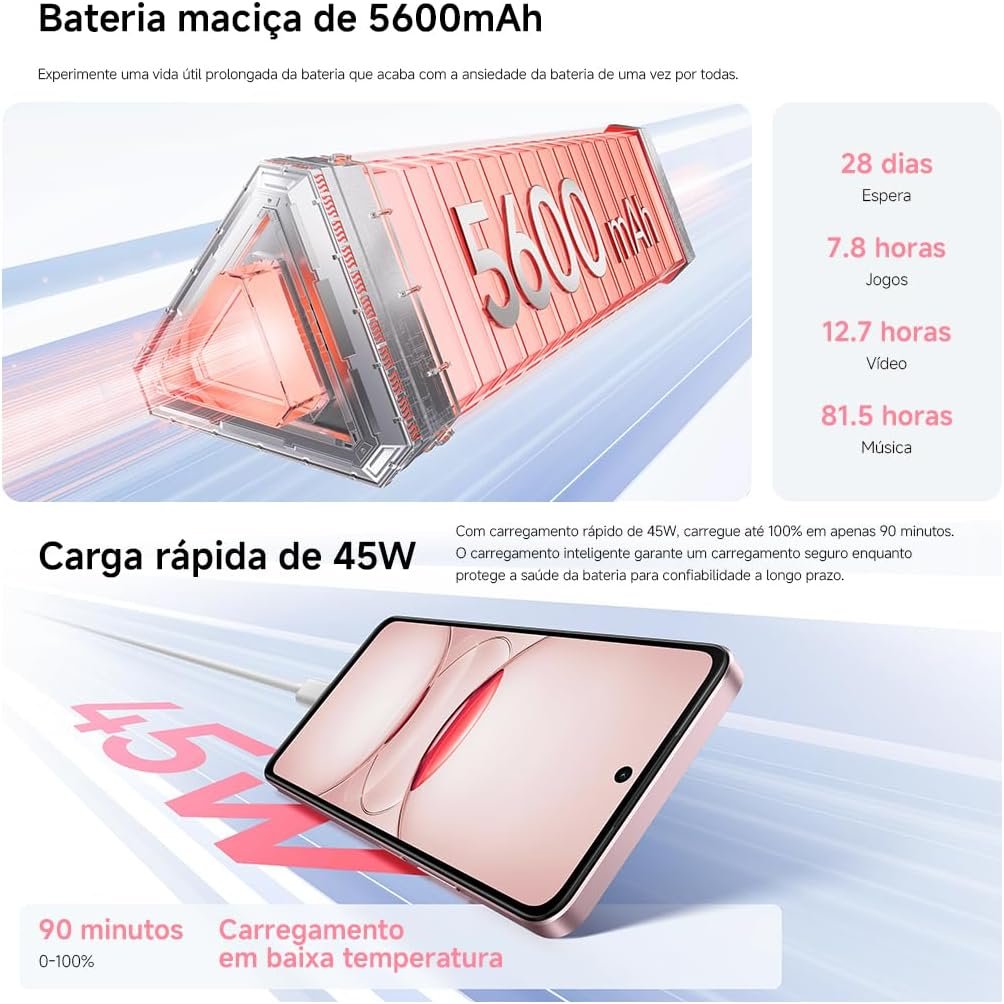 Realme C75X Smartphone 8GB RAM 256GB ROM Tela de 6.67″ IP69 Provação de água NFC Dual SIM 4G (Rosa)