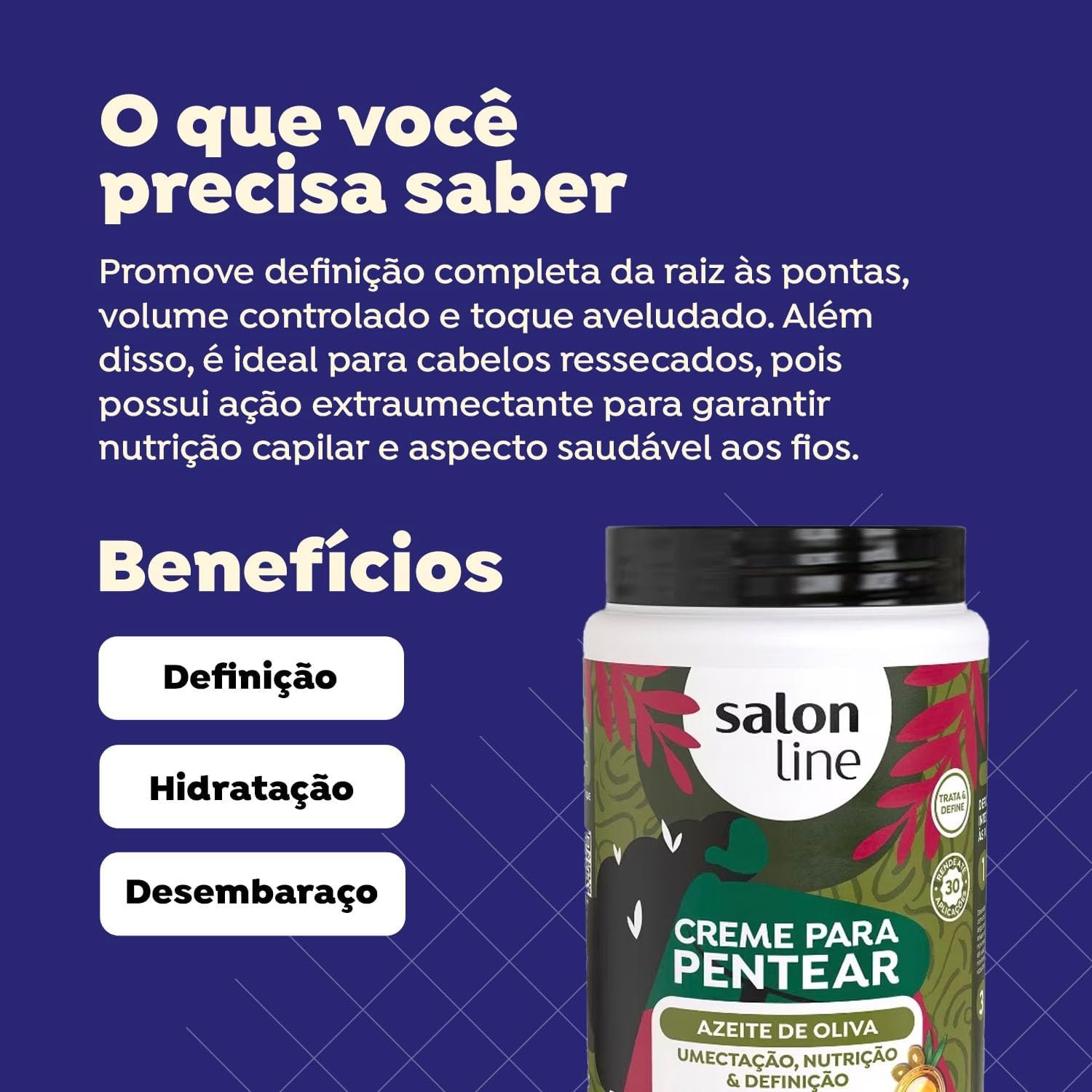 Salon Line, Creme de Pentear, Azeite de Oliva, Vegano – Para Cabelos Ondulados, Cacheados, Crespos e em Transição Capilar, 1 kg