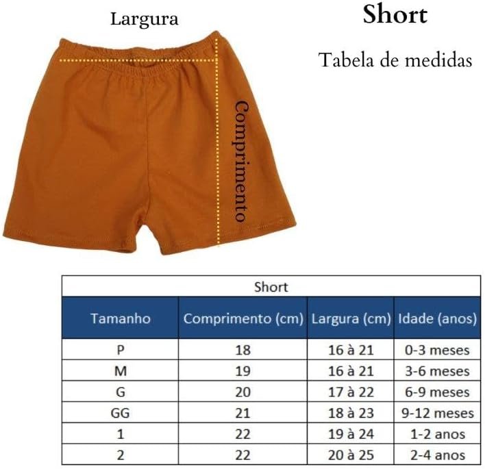Short Bebê Short Infantil Roupas de bebe minimalista P M G GG 1 2