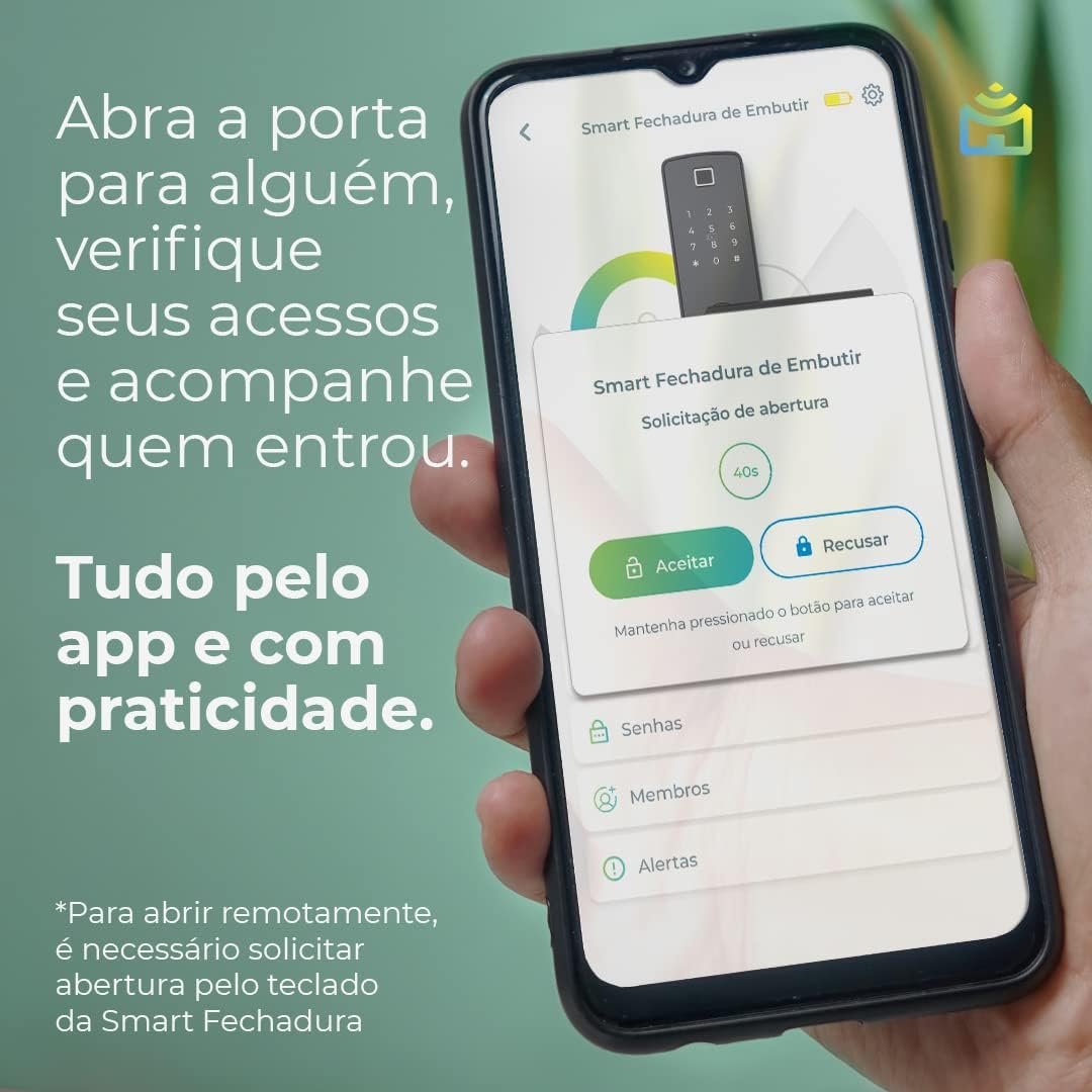 Com uma variedade de recursos e cinco modos diferentes de abertura, incluindo senha, biometria, tags, chave mecânica e Aplicativo Positivo Casa Inteligente, você tem muito mais liberdade para escolher a opção que melhor te atende. Caso alguém chegue em sua casa, com um simples toque na fechadura você pode ser notificado pelo celular e tem até 1 minuto para liberar uma senha de acesso.
