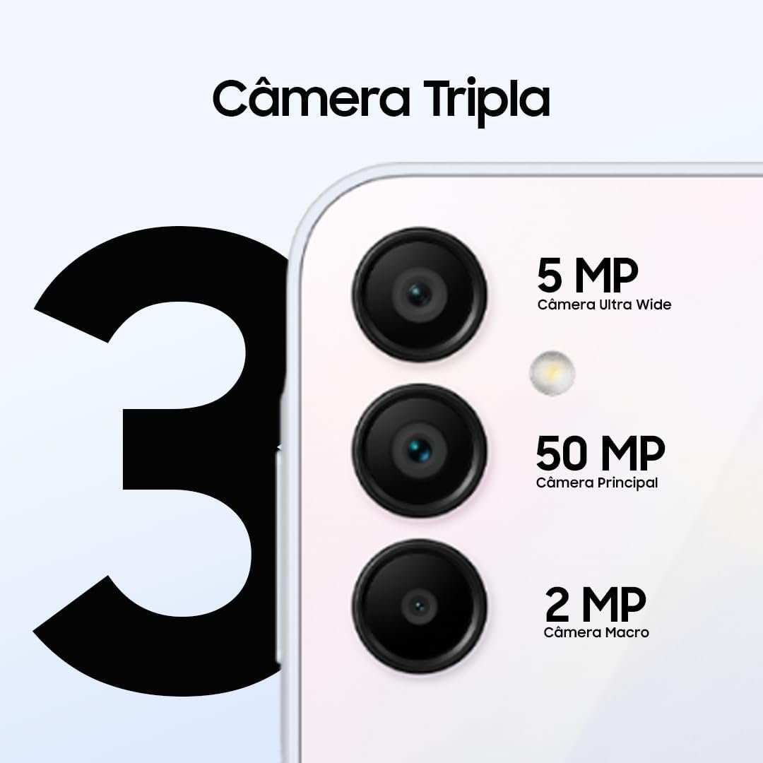 Smartphone Samsung Galaxy A15 5G, Tela Infinita Super AMOLED de 6.5″ 90Hz, 128GB, 4GB, Processador MediaTek, Bateria de longa duração de 5.000mAh, Câmera Tripla Traseira de até 50MP, Selfie de 13MP, Dual Chip – Azul Claro