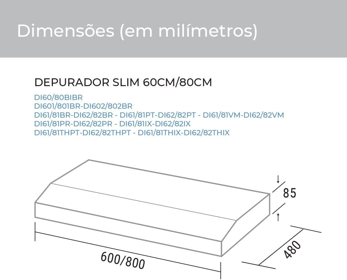 SUGGAR DEPURADOR DE AR SLIM C/MANTA 60CM PRETO 3 VELOCIDADES 220V DI602PT