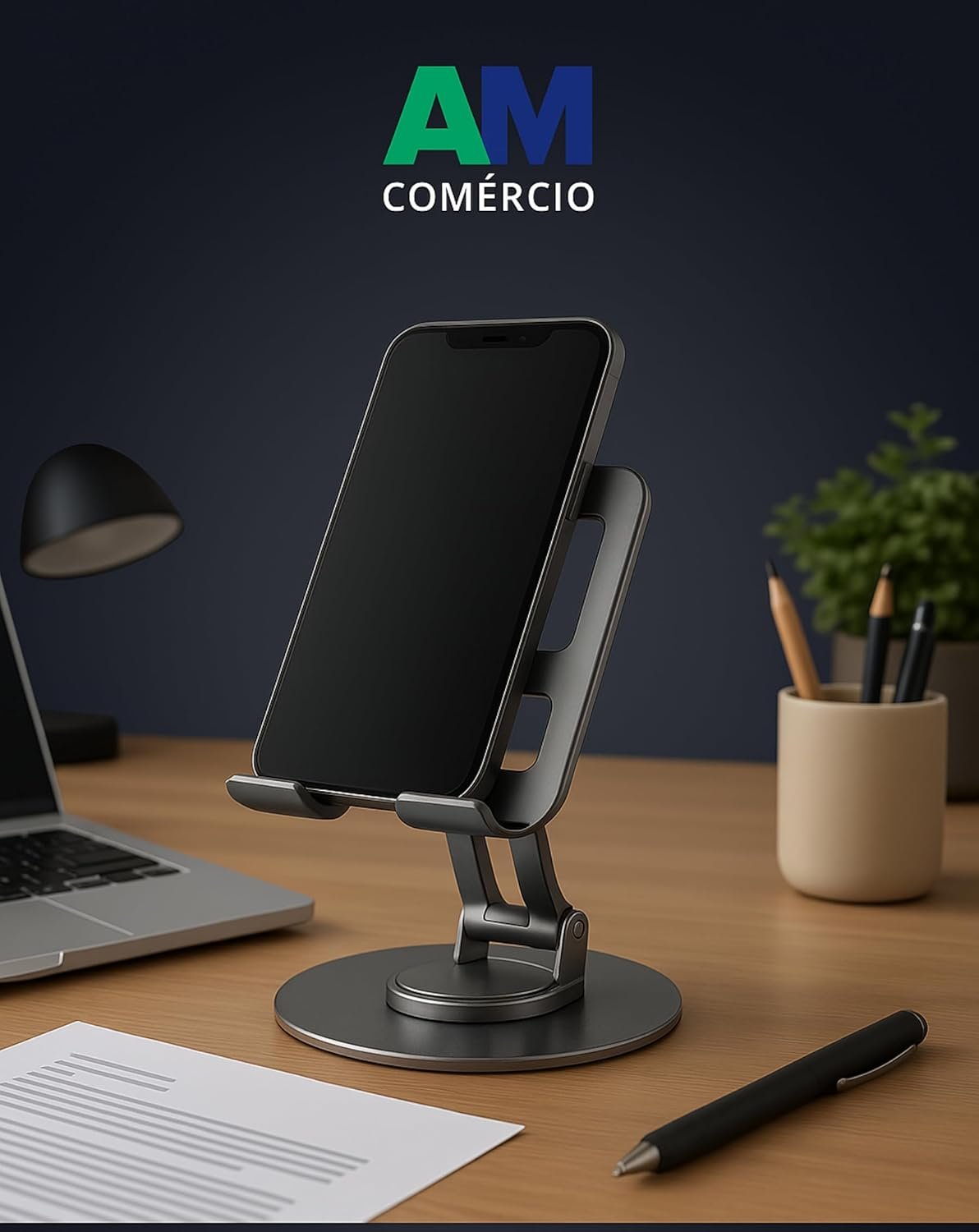 Suporte Celular de Mesa em Alumínio com Base Rotativa 360° Ajustável