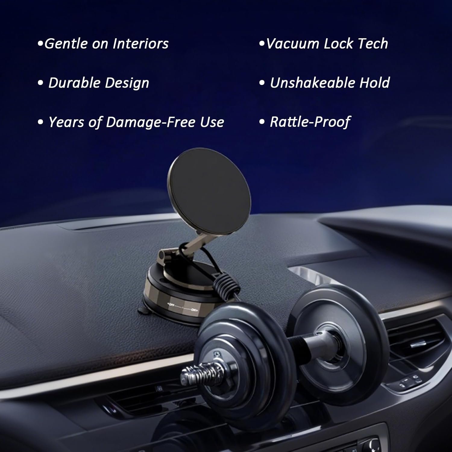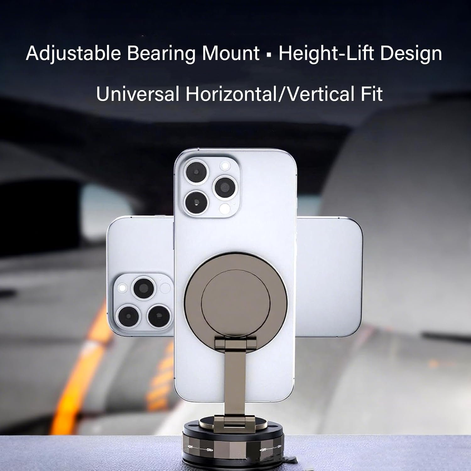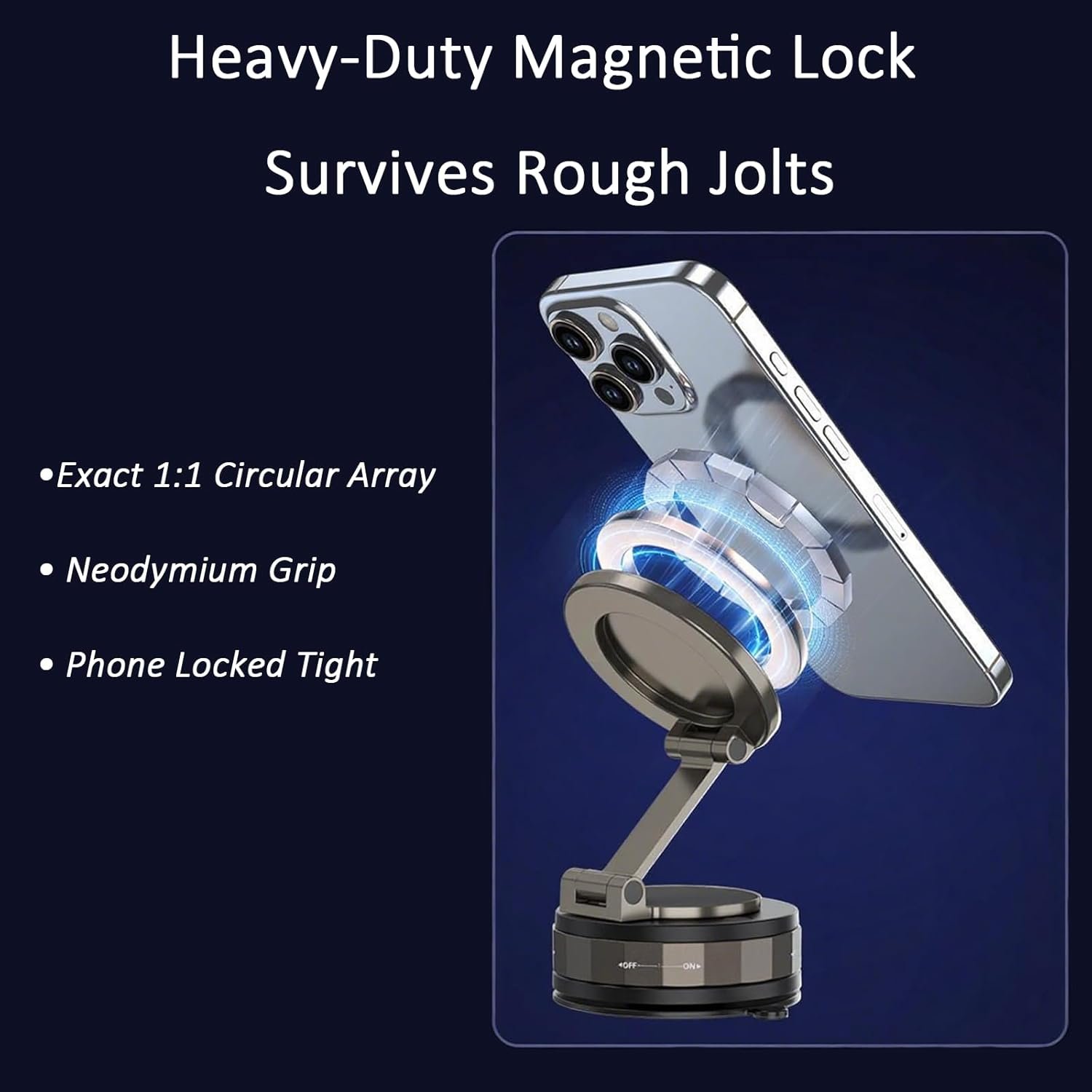 Suporte magnético de telefone para carro – Suporte de telefone de carro ajustável de 360° com poderoso ímã de anel de neodímio e suporte de ventosa a vácuo, suporte universal de celular para painel