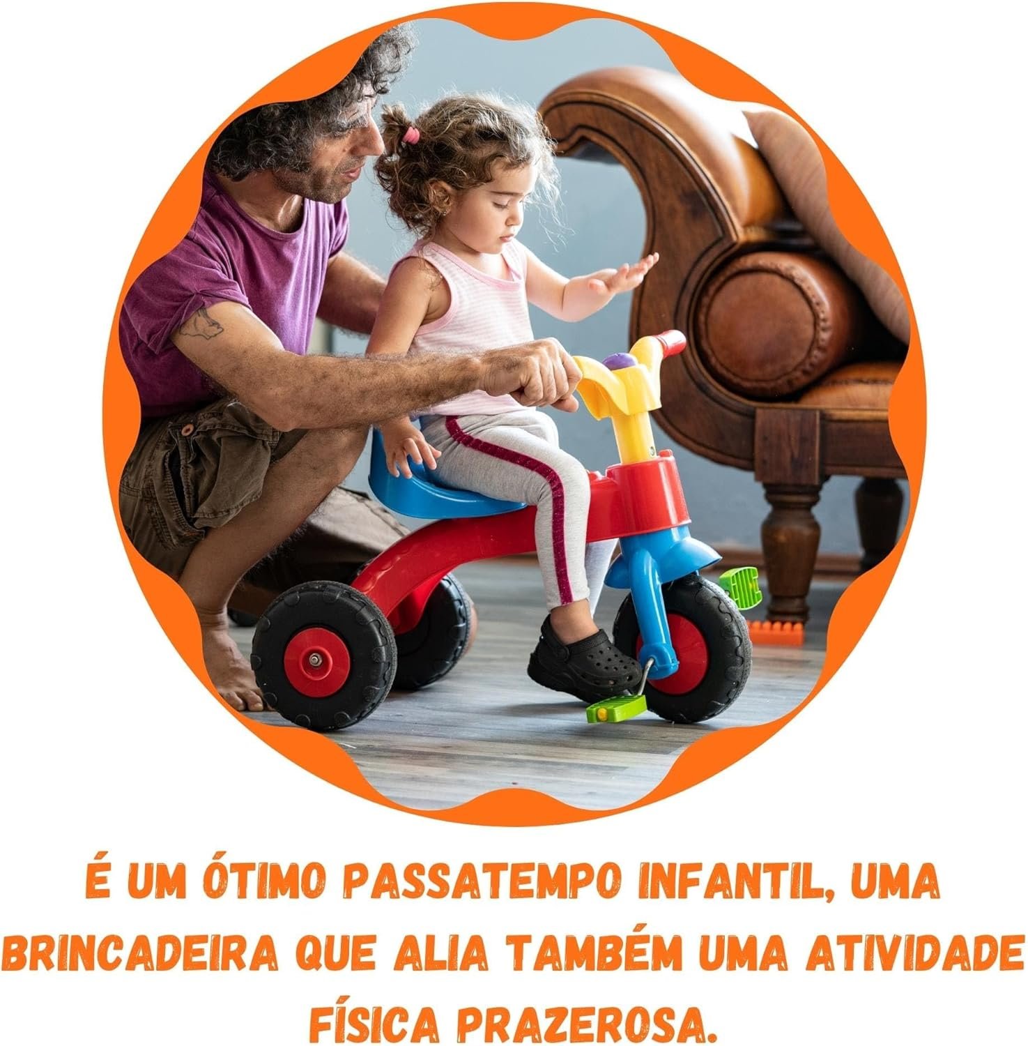 O triciclo é um brinquedo adorado pelas crianças. É um ótimo passatempo infantil, uma brincadeira que alia também uma atividade física prazerosa. Lindo triciclo em tons de verde e azul, o triciclo Esportes vem com cestinha para carregar brinquedos e lindos adesivos para decorá-lo. Resistente e durável, possibilita as crianças o desenvolvimento da coordenação motora, equilíbrio e atenção.